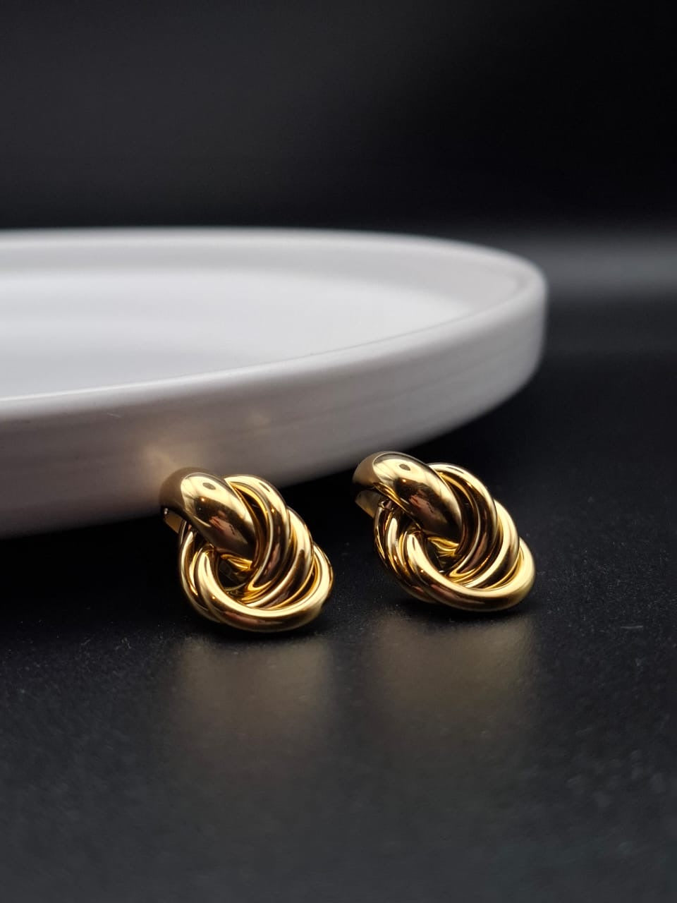 Διαχρονικά και κομψά, αυτά τα σκουλαρίκια από ανοξείδωτο ατσάλι σε χρυσό τόνο διαθέτουν έναν κλασικό σχέδιο κόμπου, που συμβολίζει την ένωση και την αρμονία. Η γυαλιστερή επιφάνειά τους αντανακλά το φως, προσδίδοντας μια αίσθηση πολυτέλειας. Ιδανικά για κάθε περίσταση, αποτελούν ένα must-have αξεσουάρ που συμπληρώνει άψογα τόσο casual όσο και formal looks.