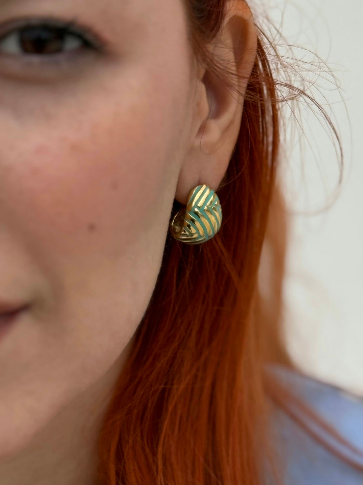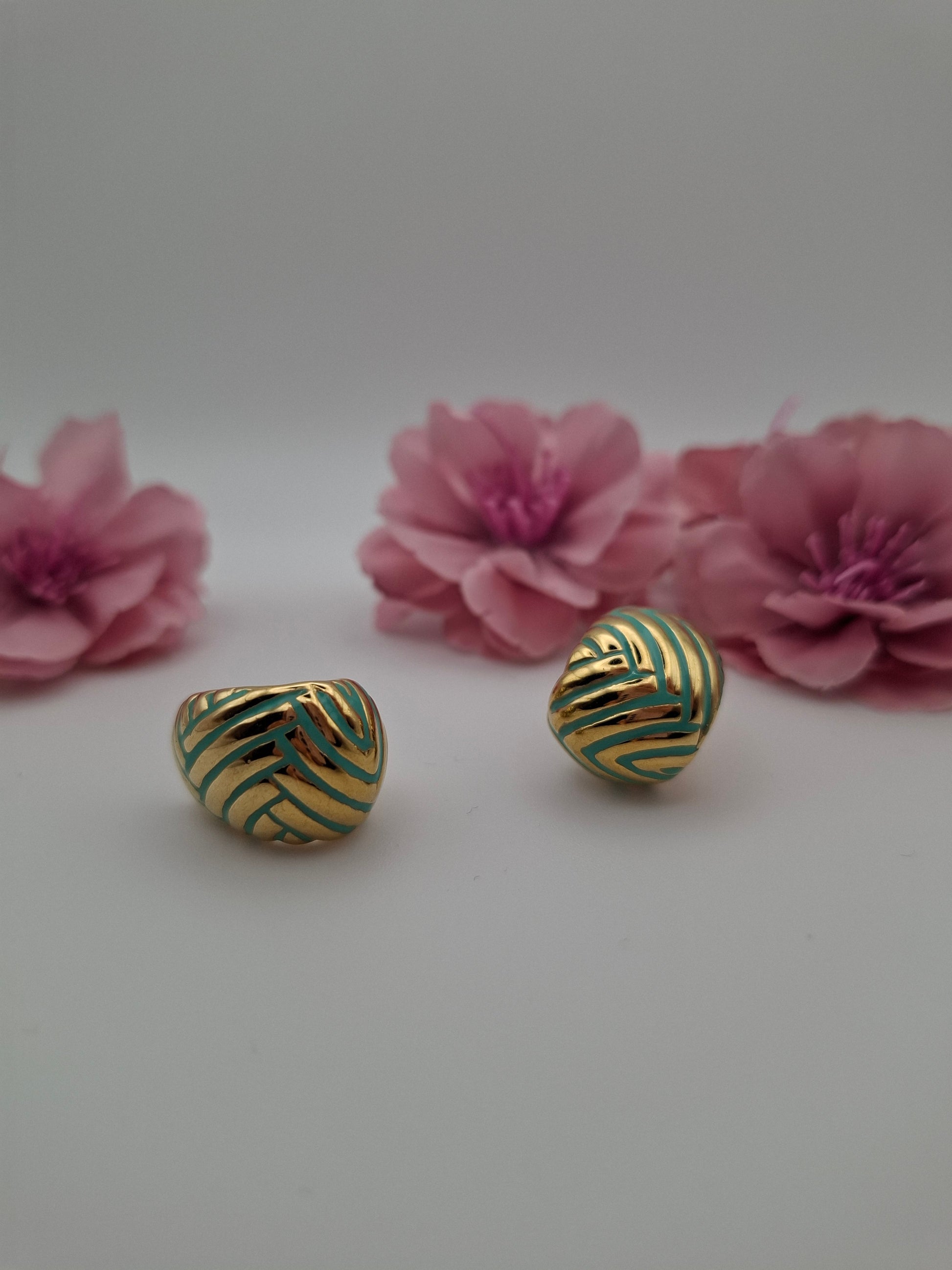Η λάμψη του χρυσού συναντά τη δροσιά του τιρκουάζ σε αυτά τα εντυπωσιακά σκουλαρίκια από ανοξείδωτο ατσάλι. Με μαρμάρινες υφές που θυμίζουν τα κύματα της θάλασσας, είναι το απόλυτο statement κομμάτι για κομψές και αέρινες καλοκαιρινές εμφανίσεις.