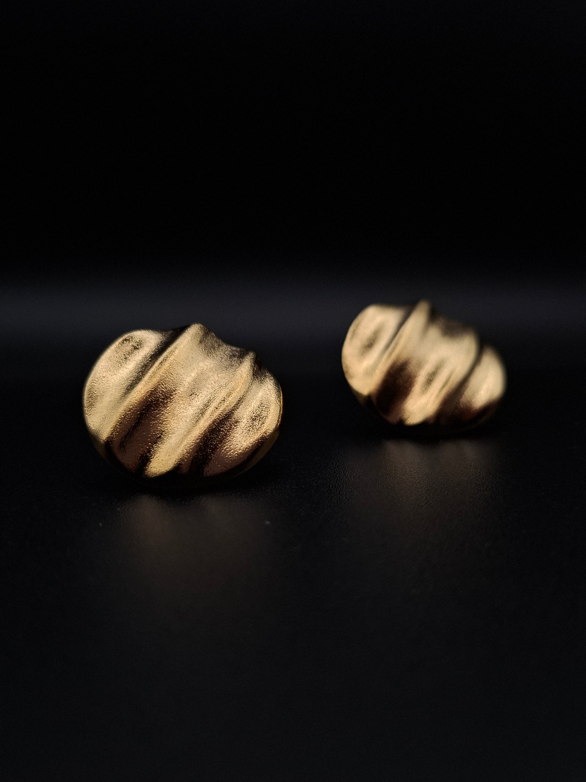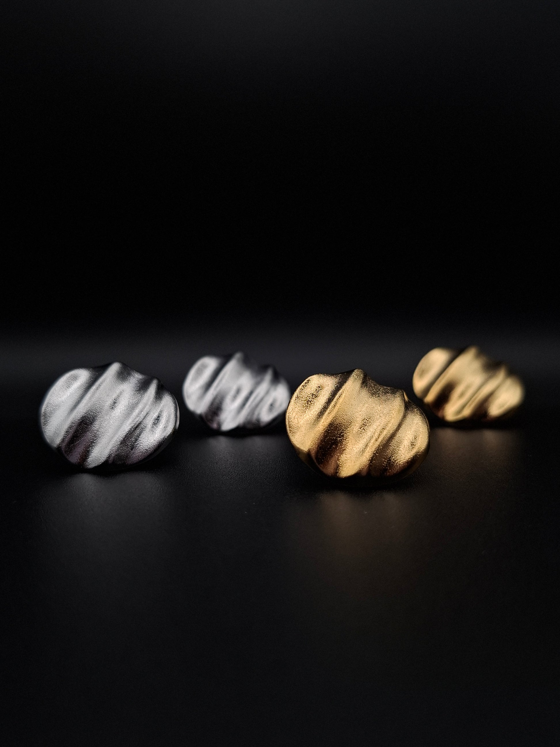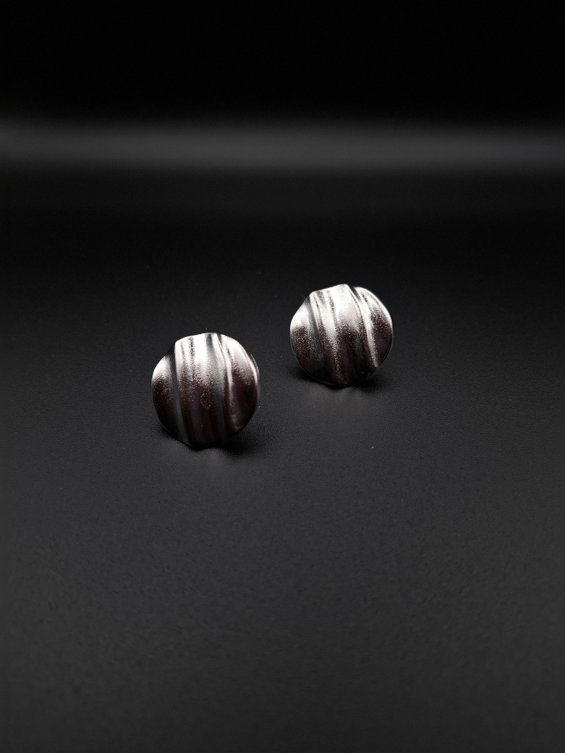 Σκουλαρίκια από ανοξείδωτο ατσάλι με ανάγλυφο, κυματιστό σχέδιο που προσδίδει μια διακριτική αλλά ιδιαίτερη υφή. Το ματ φινίρισμά τους προσθέτει μια σύγχρονη και elegant πινελιά, ιδανική για minimal και sophisticated εμφανίσεις.
