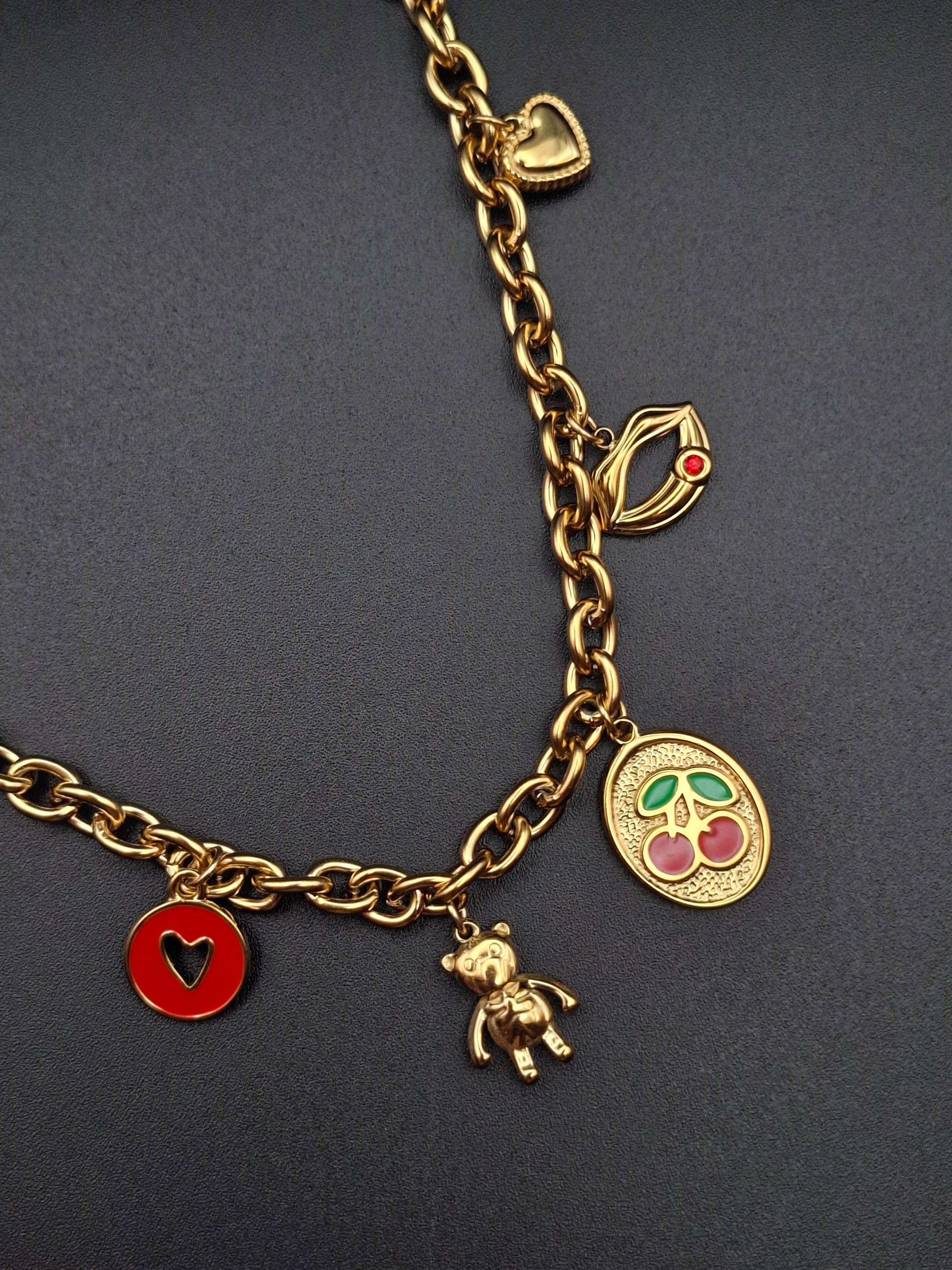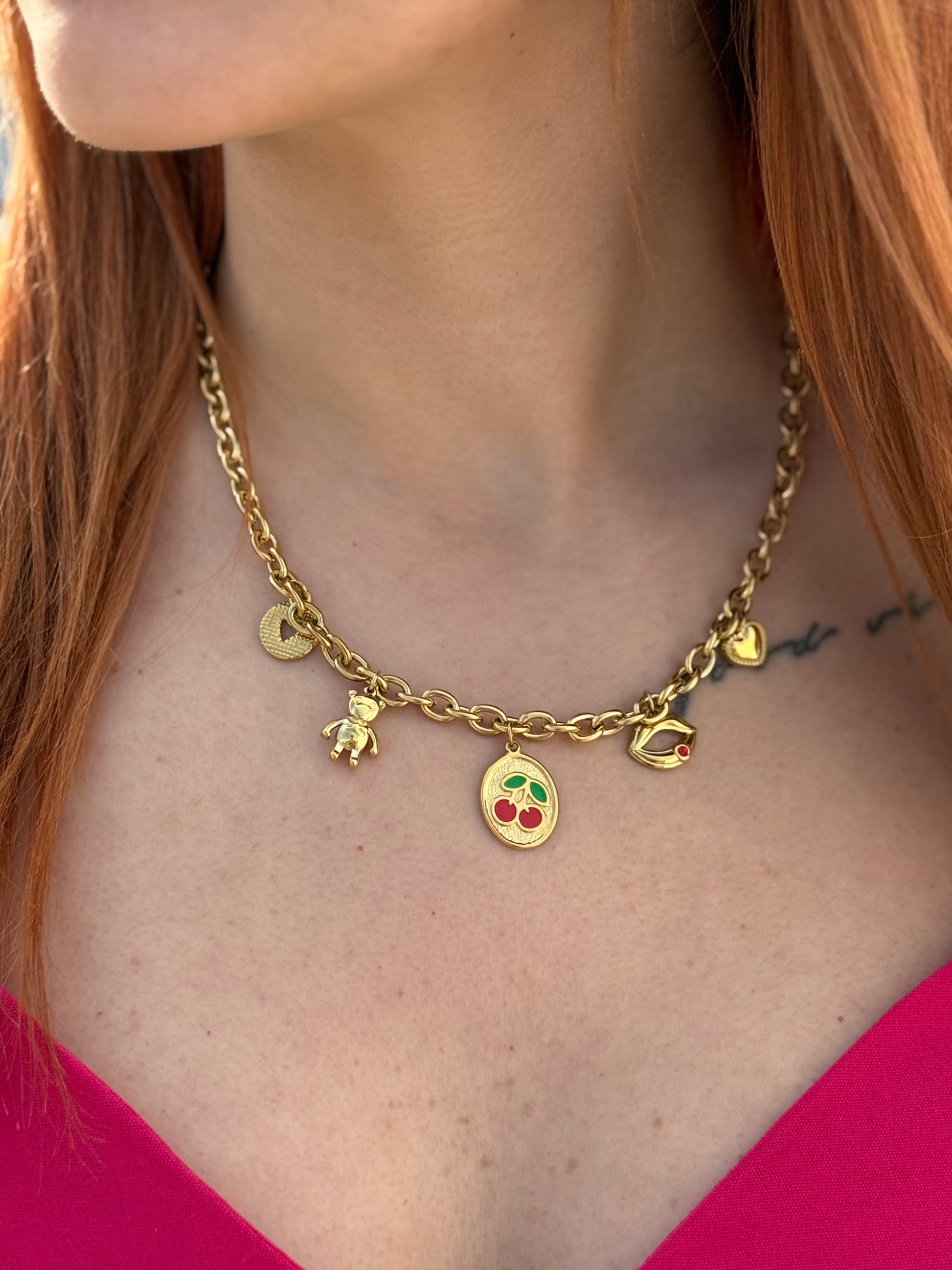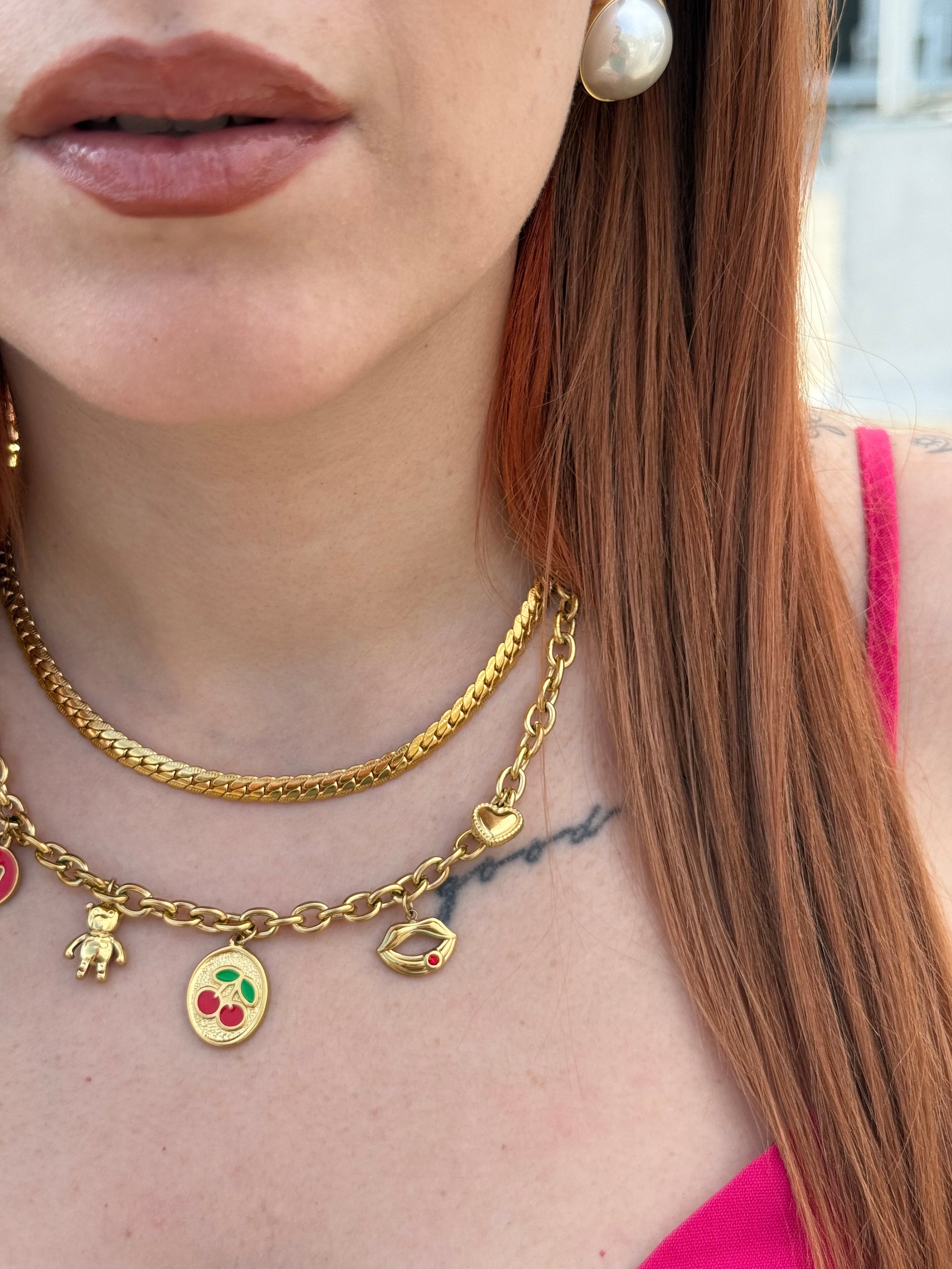 Το Amélie είναι ένα παιχνιδιάρικο αλλά κομψό κολιέ από ανοξείδωτο ατσάλι, σχεδιασμένο για να προσθέσει μια δόση χαράς και στυλ σε κάθε εμφάνιση. Διακοσμημένο με ιδιαίτερα charms, συνδυάζει τη μοντέρνα αισθητική με ρετρό επιρροές.
