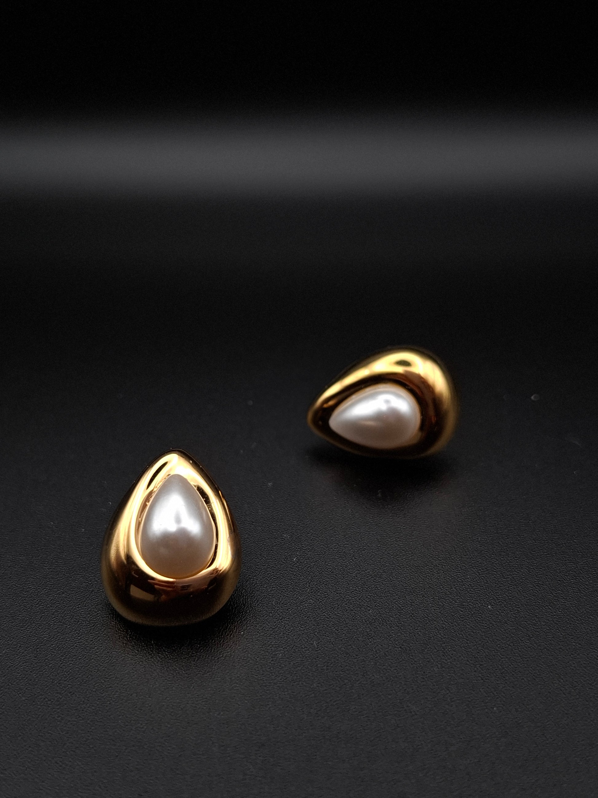 Κομψά σκουλαρίκια από ανοξείδωτο ατσάλι σε χρυσό τόνο, διακοσμημένα με δάκρυ από λευκή πέρλα. Ένας διαχρονικός συνδυασμός που προσθέτει φινέτσα και πολυτέλεια σε κάθε εμφάνιση.