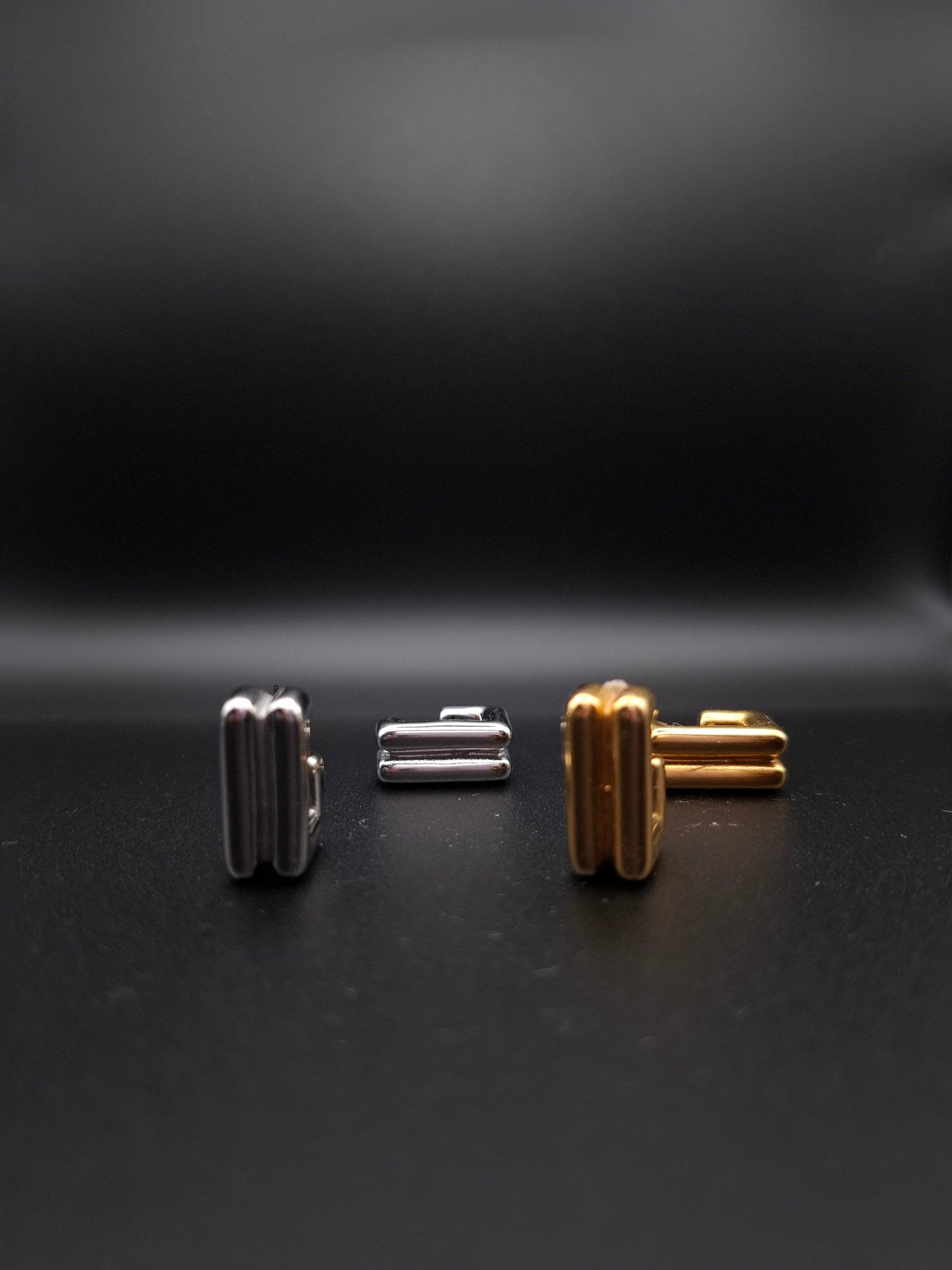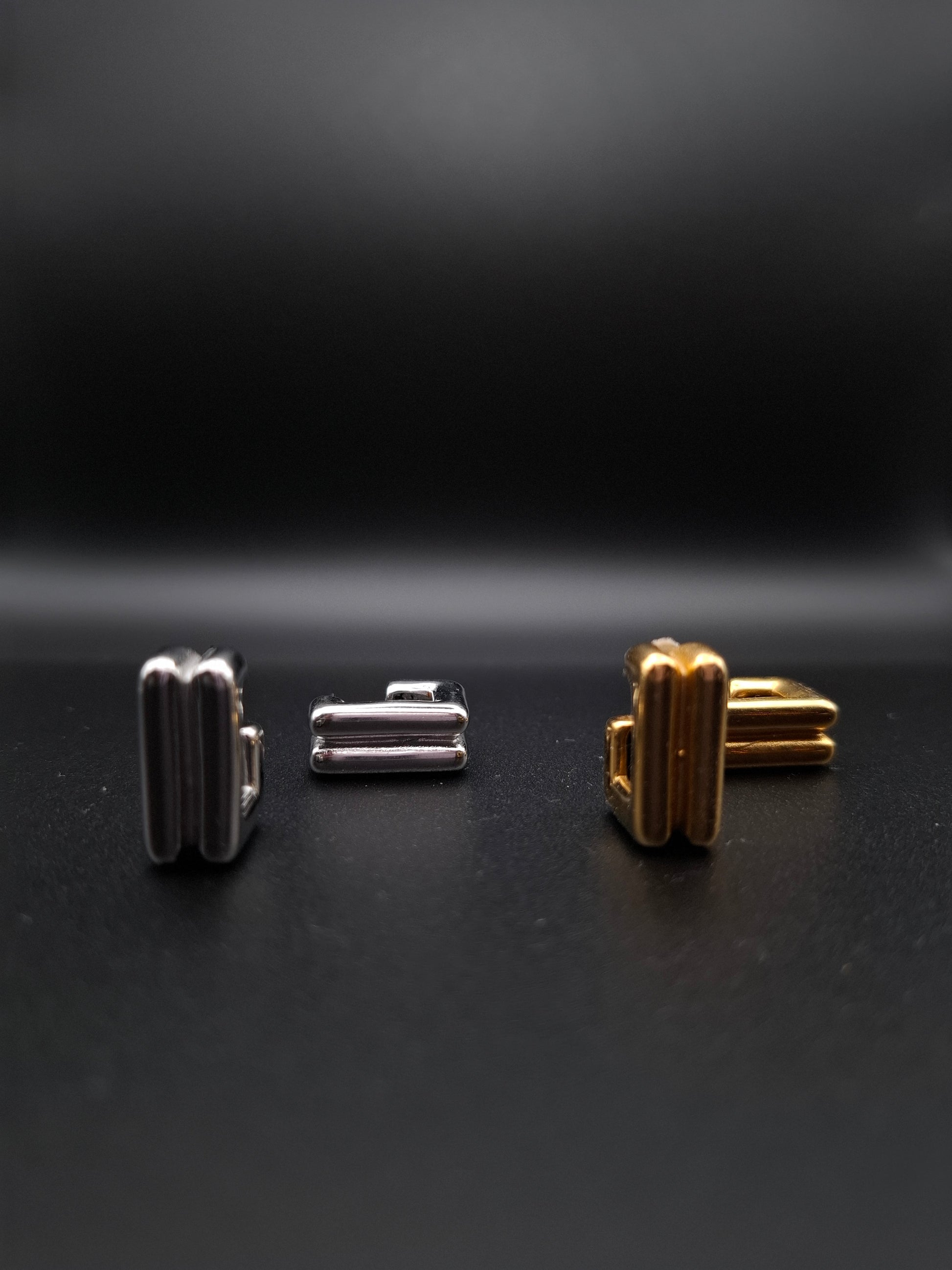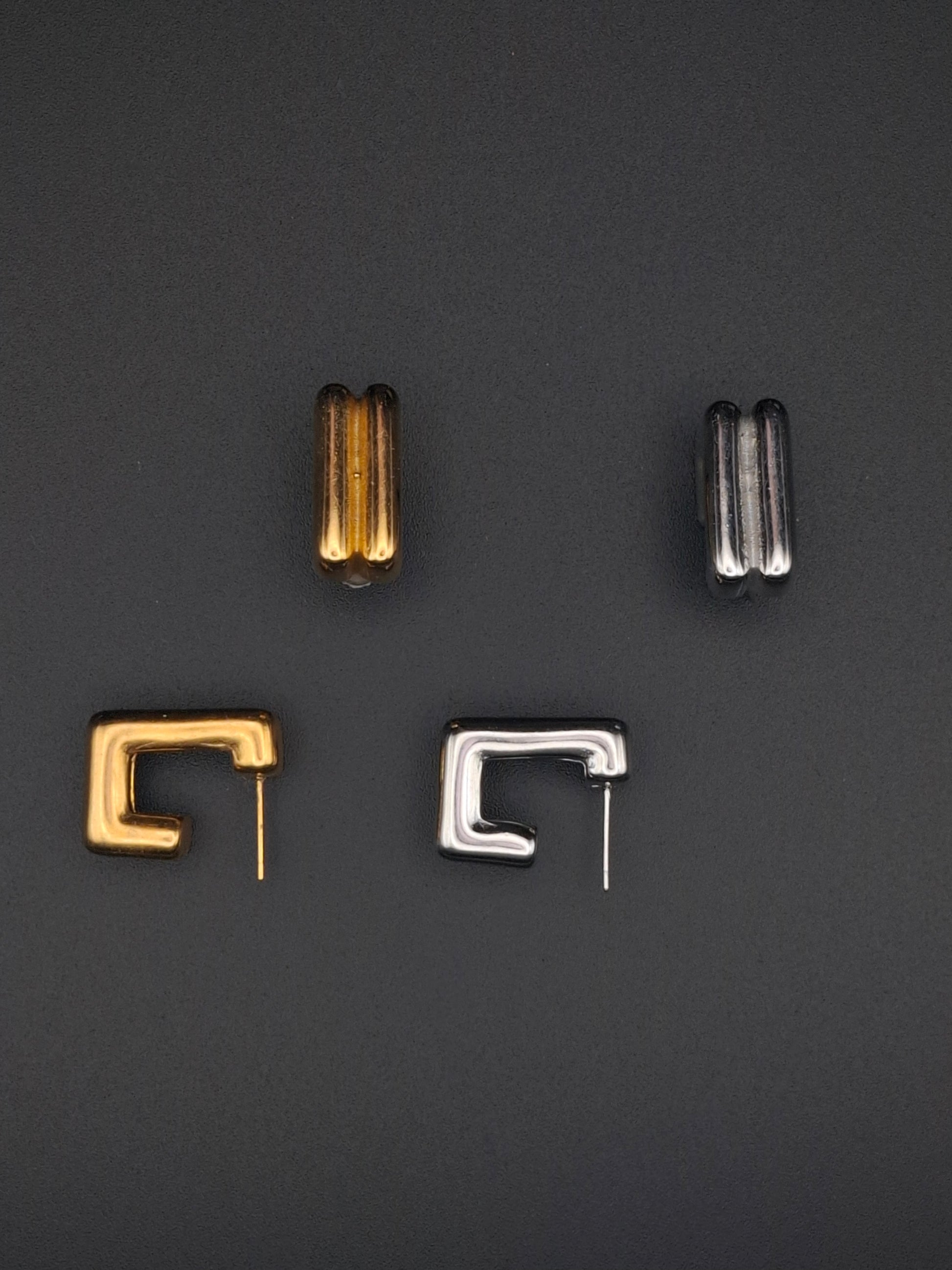 Μοντέρνα σκουλαρίκια από ανοξείδωτο ατσάλι, διαθέσιμα σε ασημί και χρυσή απόχρωση. Ο γεωμετρικός τους σχεδιασμός προσδίδει minimal αισθητική, καθιστώντας τα ιδανική επιλογή για statement εμφανίσεις με διακριτική κομψότητα.