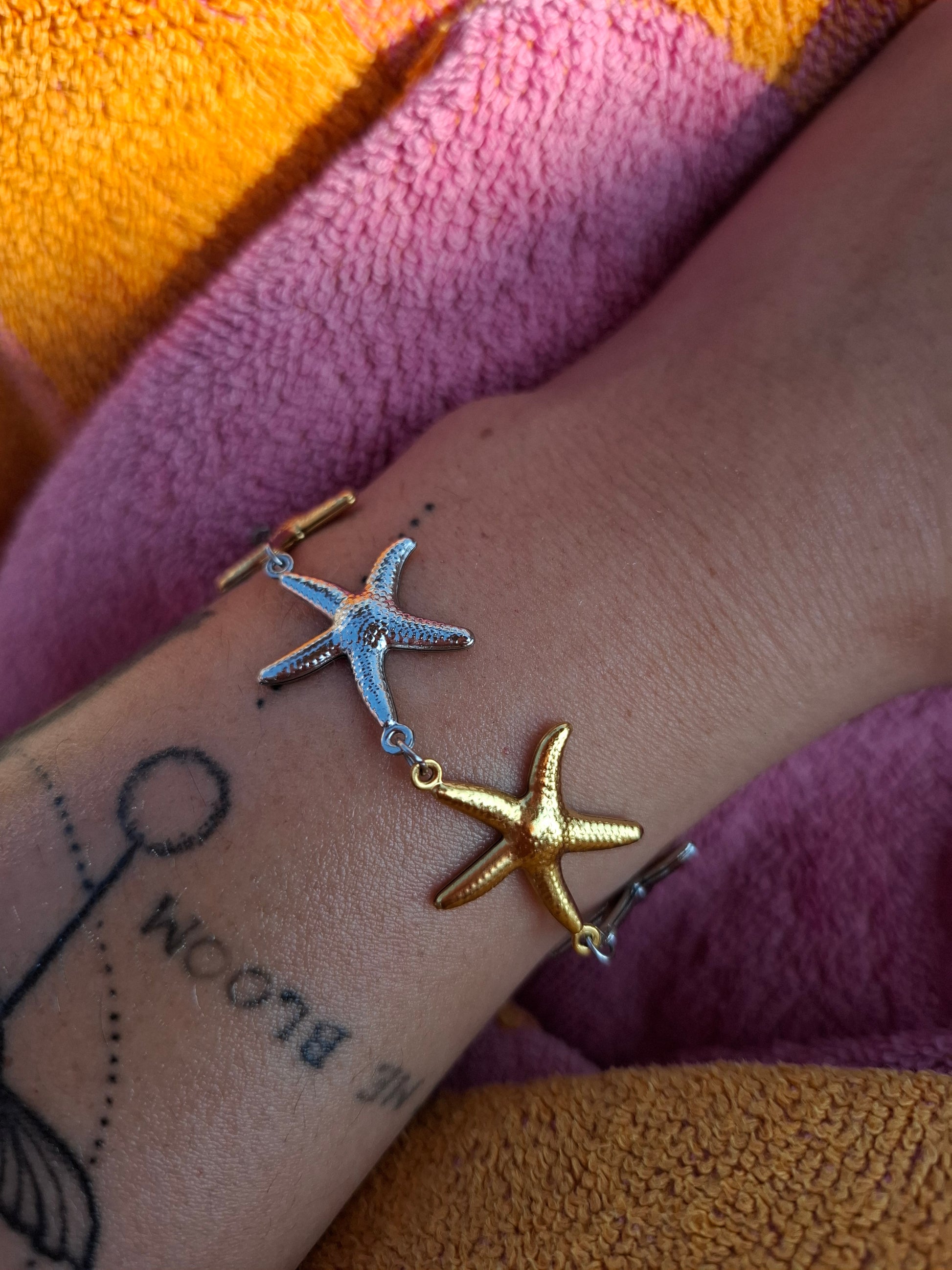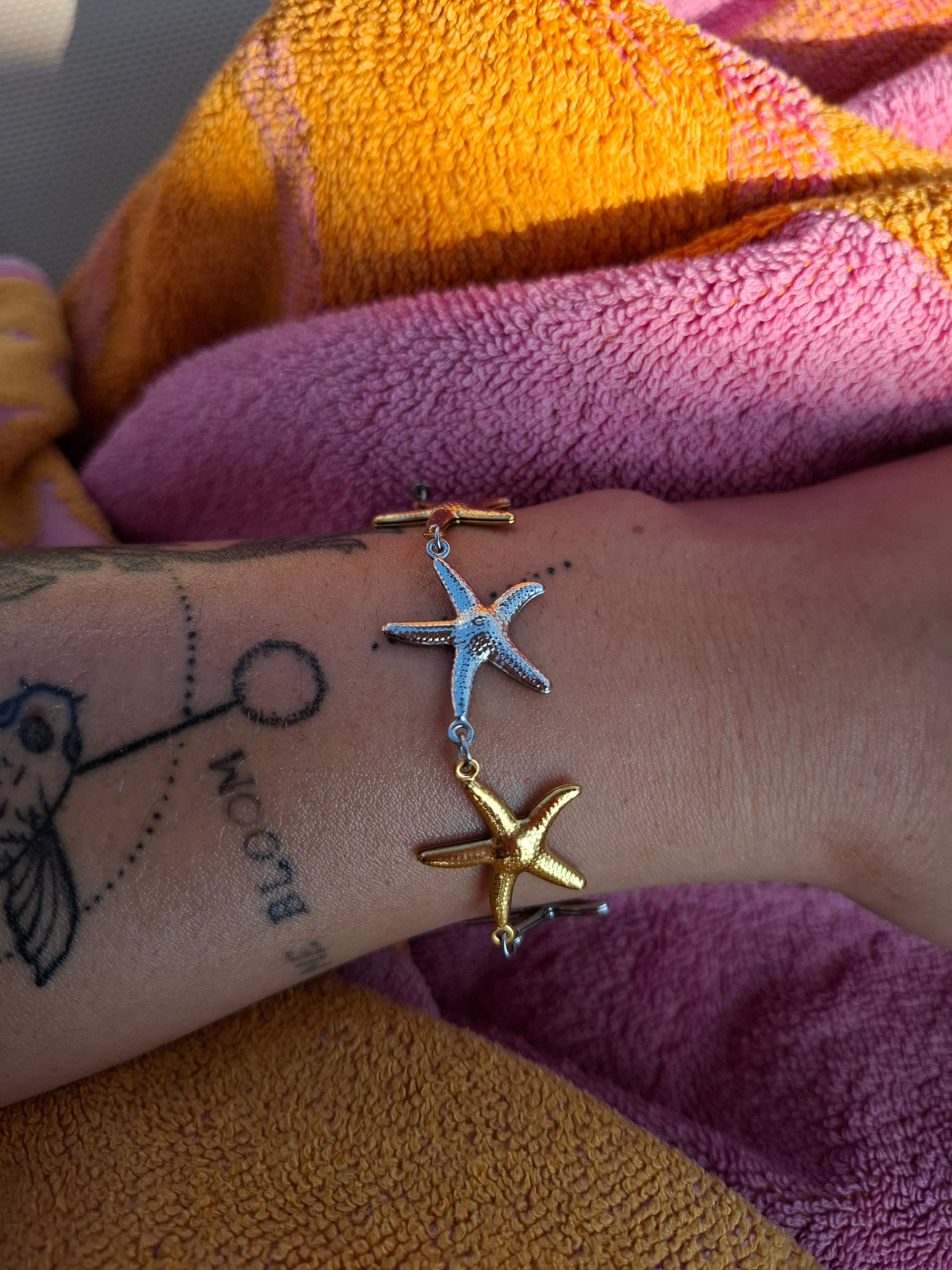 Αναδείξτε το καλοκαιρινό σας στυλ με το βραχιόλι Argentea Stella, φτιαγμένο από ανθεκτικό ανοξείδωτο ατσάλι και διακοσμημένο με μοναδικούς αστερίες. Ιδανικό για καθημερινή χρήση, δεν μαυρίζει και δεν προκαλεί αλλεργίες. Φορέστε το μόνο του ή συνδυάστε το με άλλα κοσμήματα για ένα ξεχωριστό, καλοκαιρινό look.