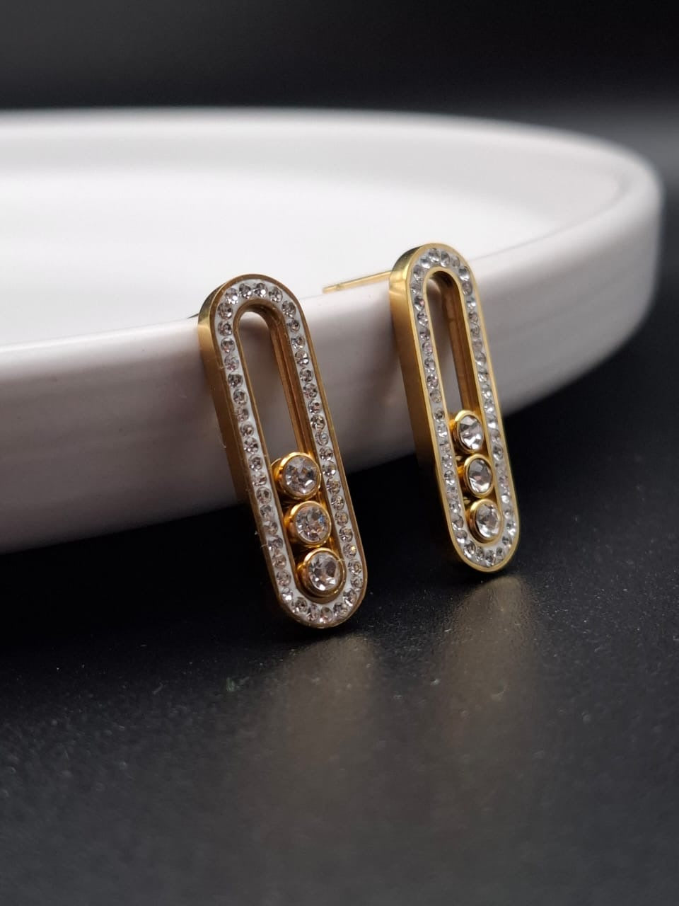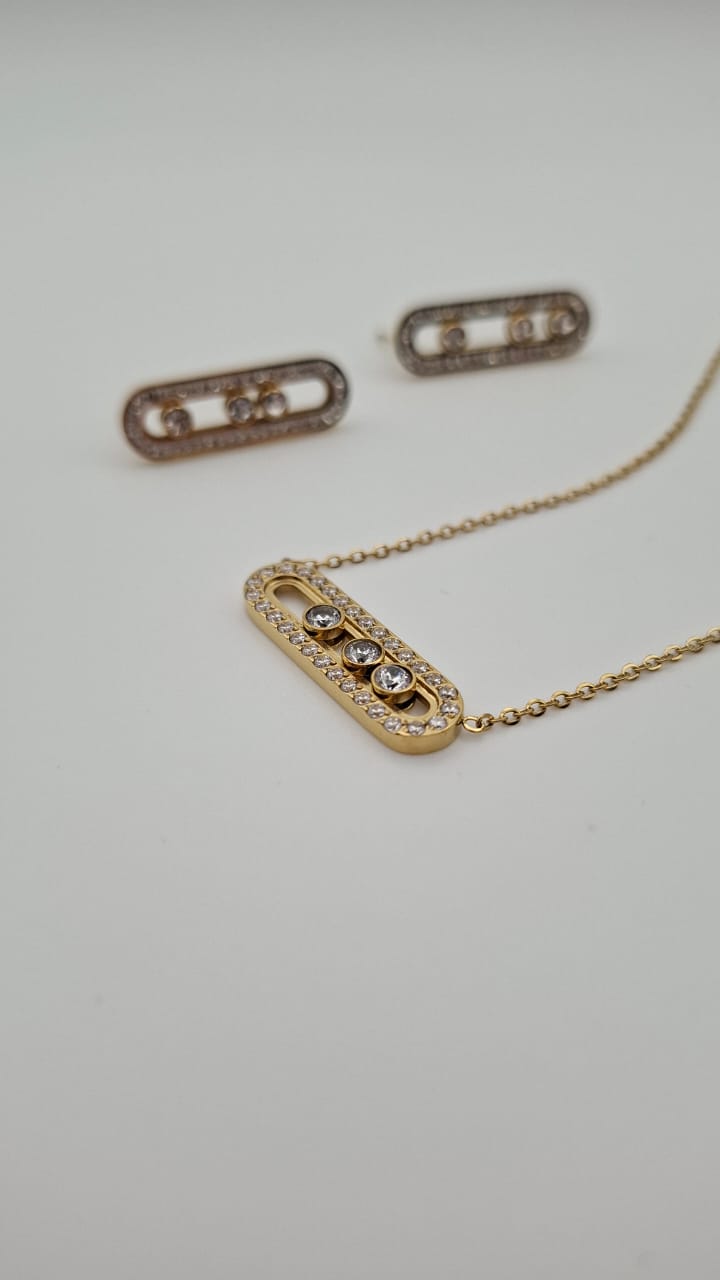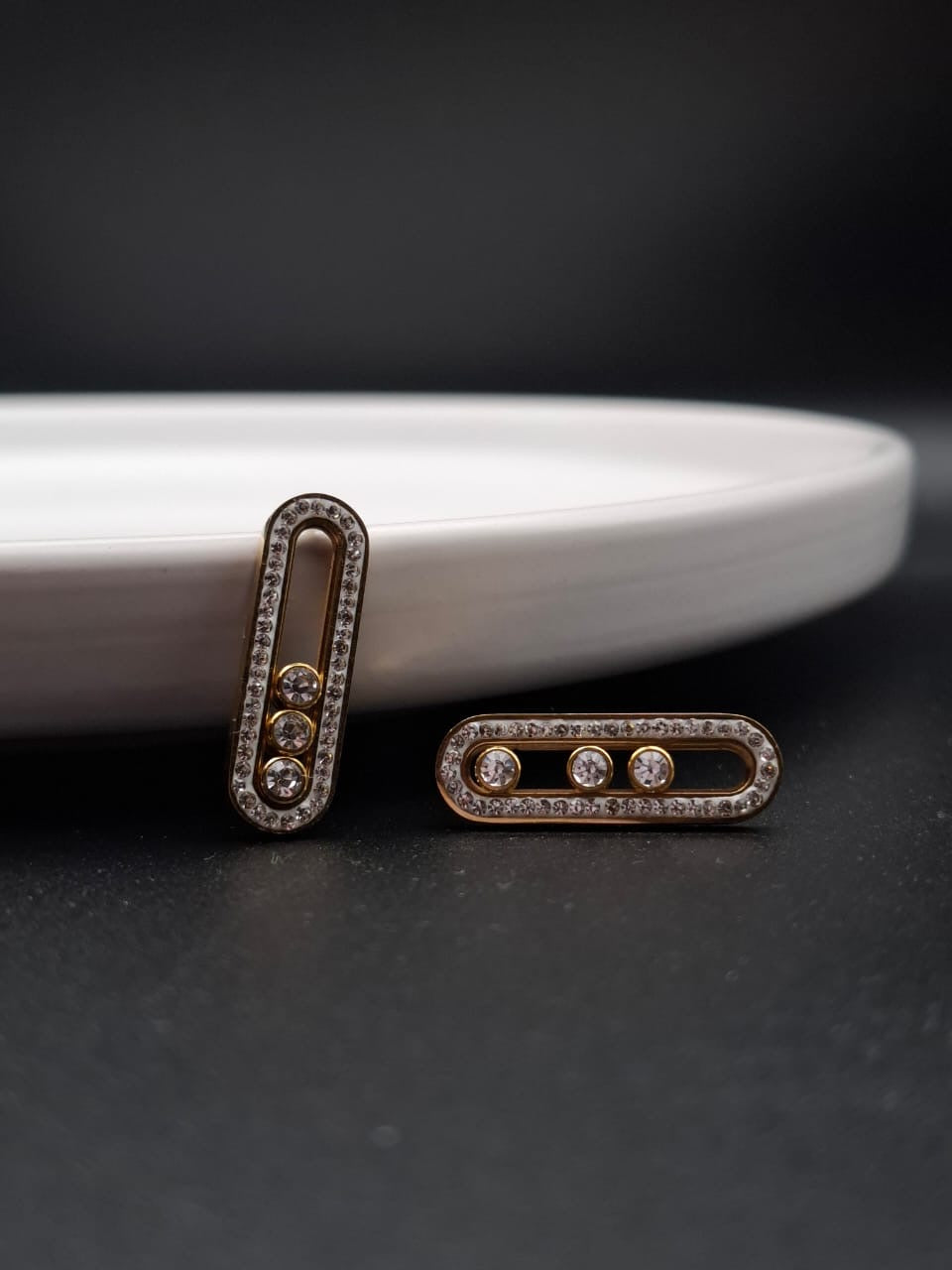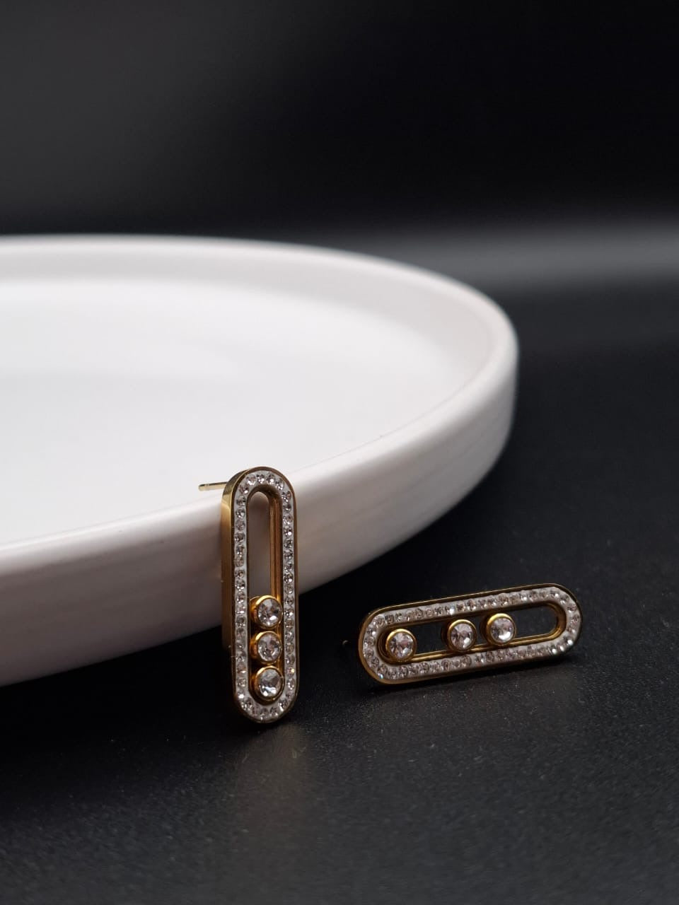 Το σετ σκουλαρικιών Aurea Duet συνδυάζει την κομψότητα του χρυσού με την λάμψη των ζιργκόν. Διαθέτει δύο διαμάντια σε κάθε κομμάτι, ιδανικό για κομψές εμφανίσεις με χαρακτήρα.