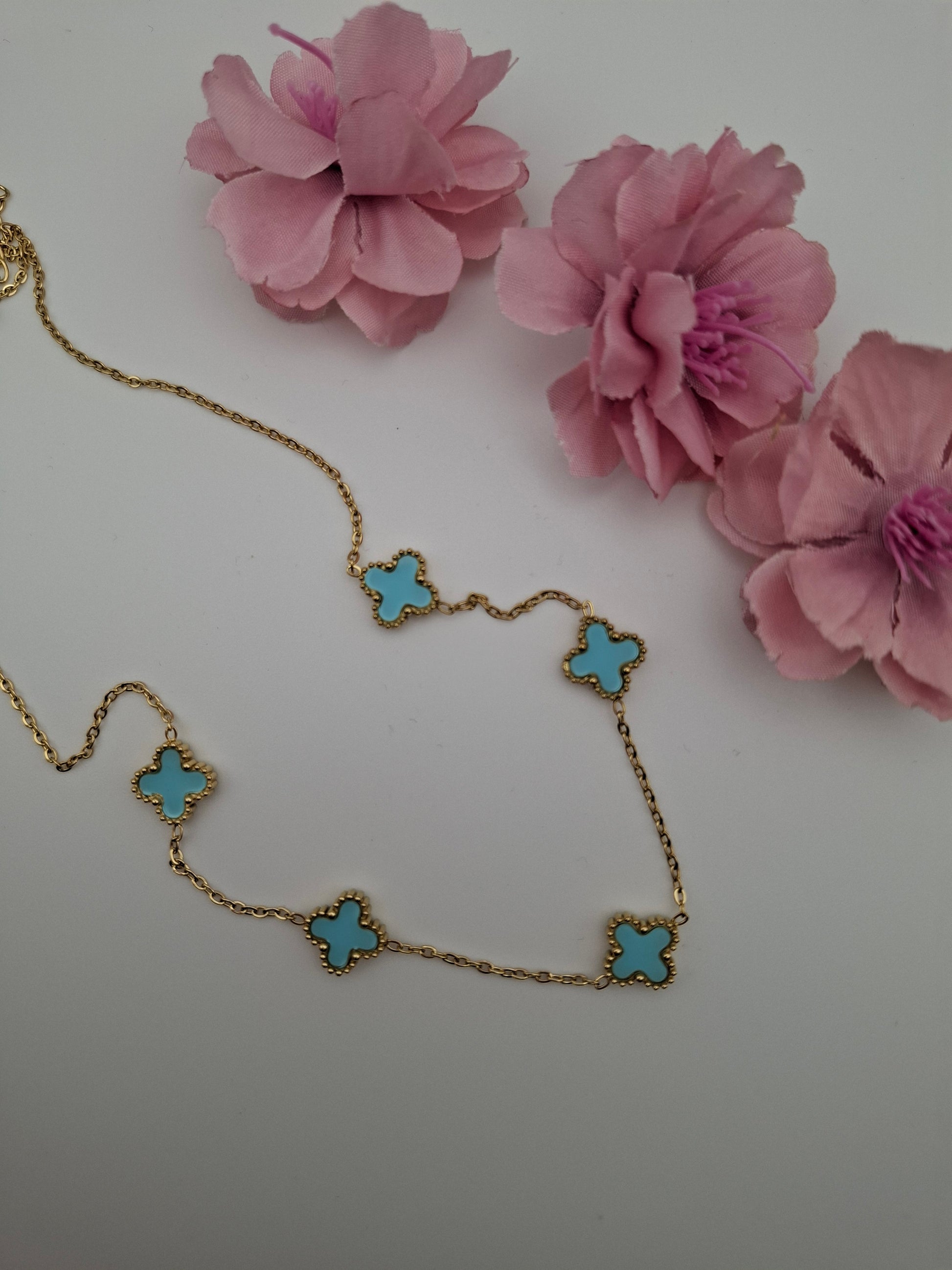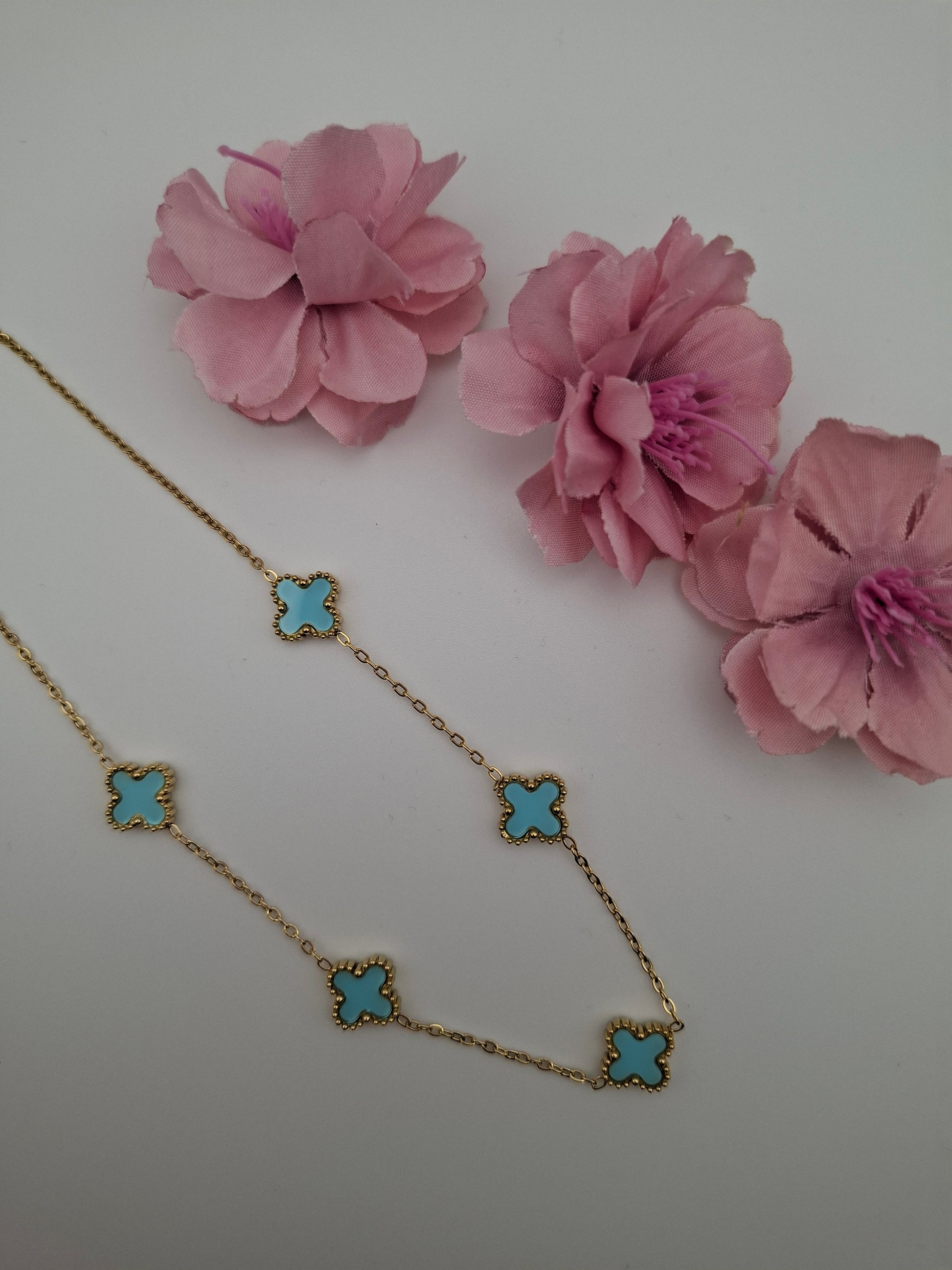 Απλό, κομψό και αέρινο! Αυτό το minimal κολιέ από ανοξείδωτο ατσάλι διακοσμείται με πανέμορφα λουλούδια σε τιρκουάζ ή λευκή απόχρωση, αποπνέοντας φρεσκάδα και φυσική κομψότητα. Ιδανικό για μια διακριτική αλλά ξεχωριστή πινελιά στο καθημερινό σου στυλ.