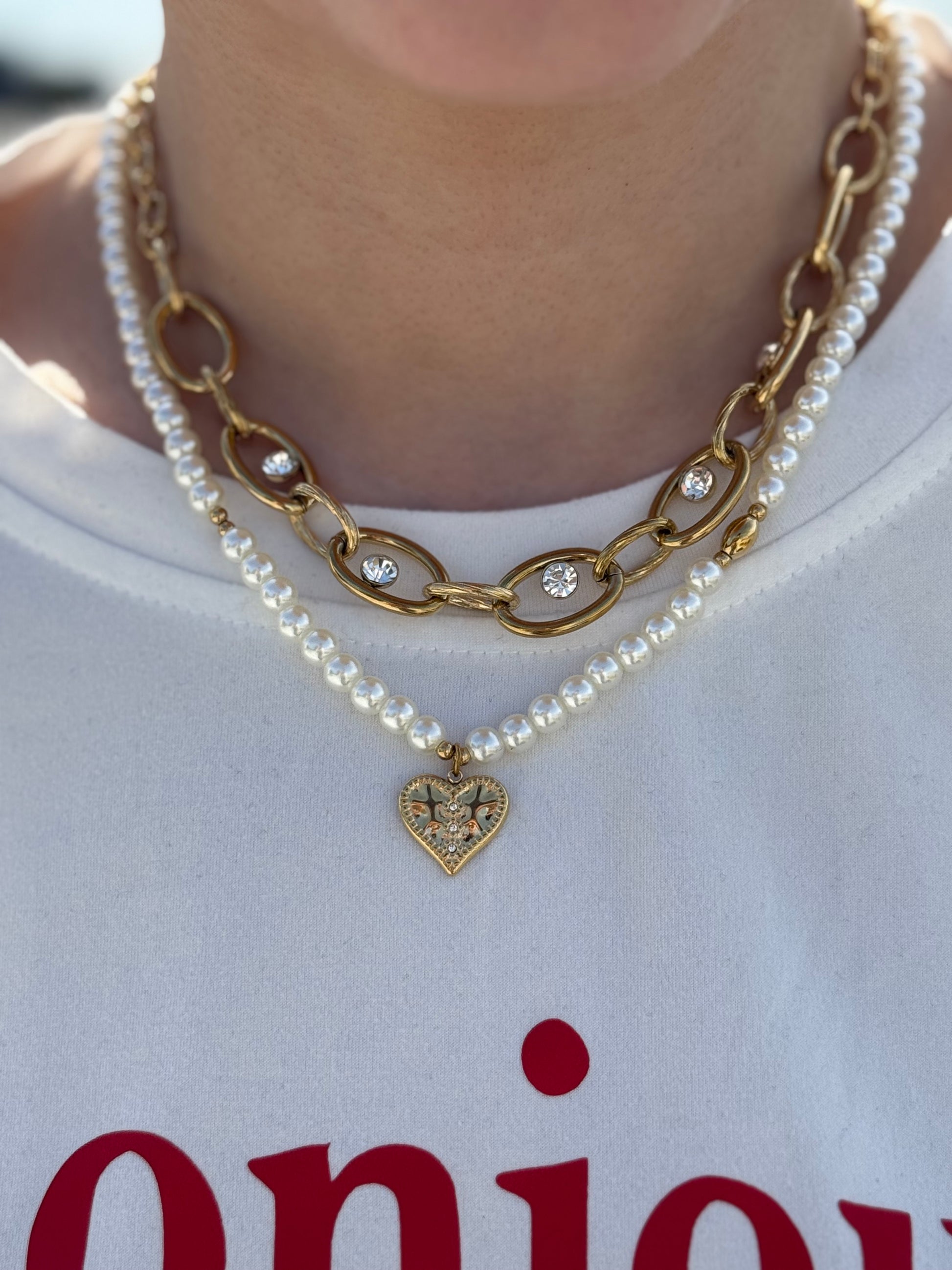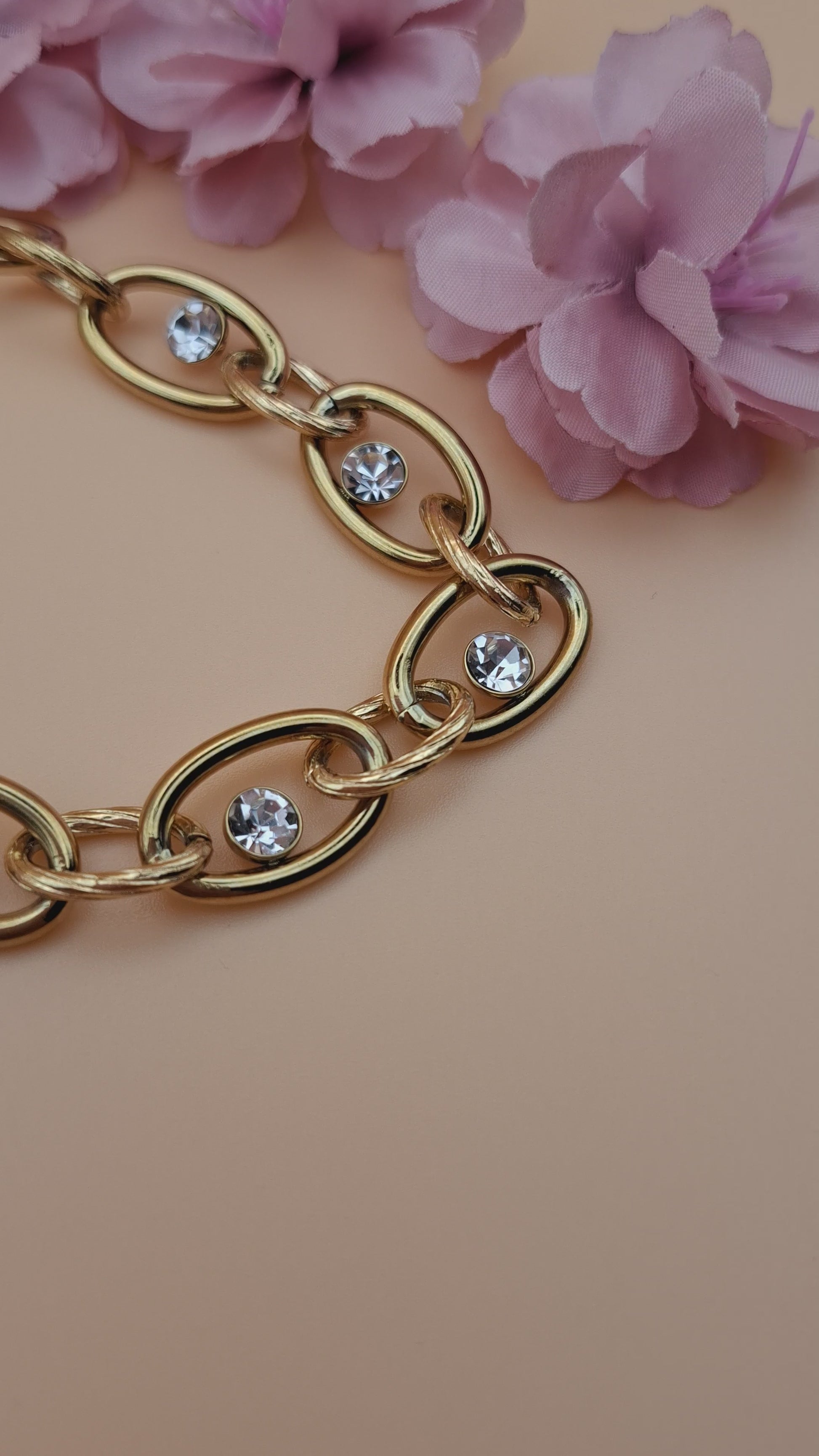 Ένα καλοκαιρινό κολιέ αλυσίδα από ανοξείδωτο ατσάλι, διακοσμημένο με λαμπερά ζιργκόν σε χρυσή απόχρωση. Ιδανικό για να προσθέσει μία αίσθηση πολυτέλειας και κομψότητας σε κάθε καλοκαιρινή εμφάνιση, συνδυάζει την απλότητα της αλυσίδας με τη λάμψη των ζιργκόν. Ένα κομψό και ευέλικτο αξεσουάρ που ταιριάζει απόλυτα σε κάθε στιγμή της ημέρας, από το πρωί μέχρι το βράδυ.