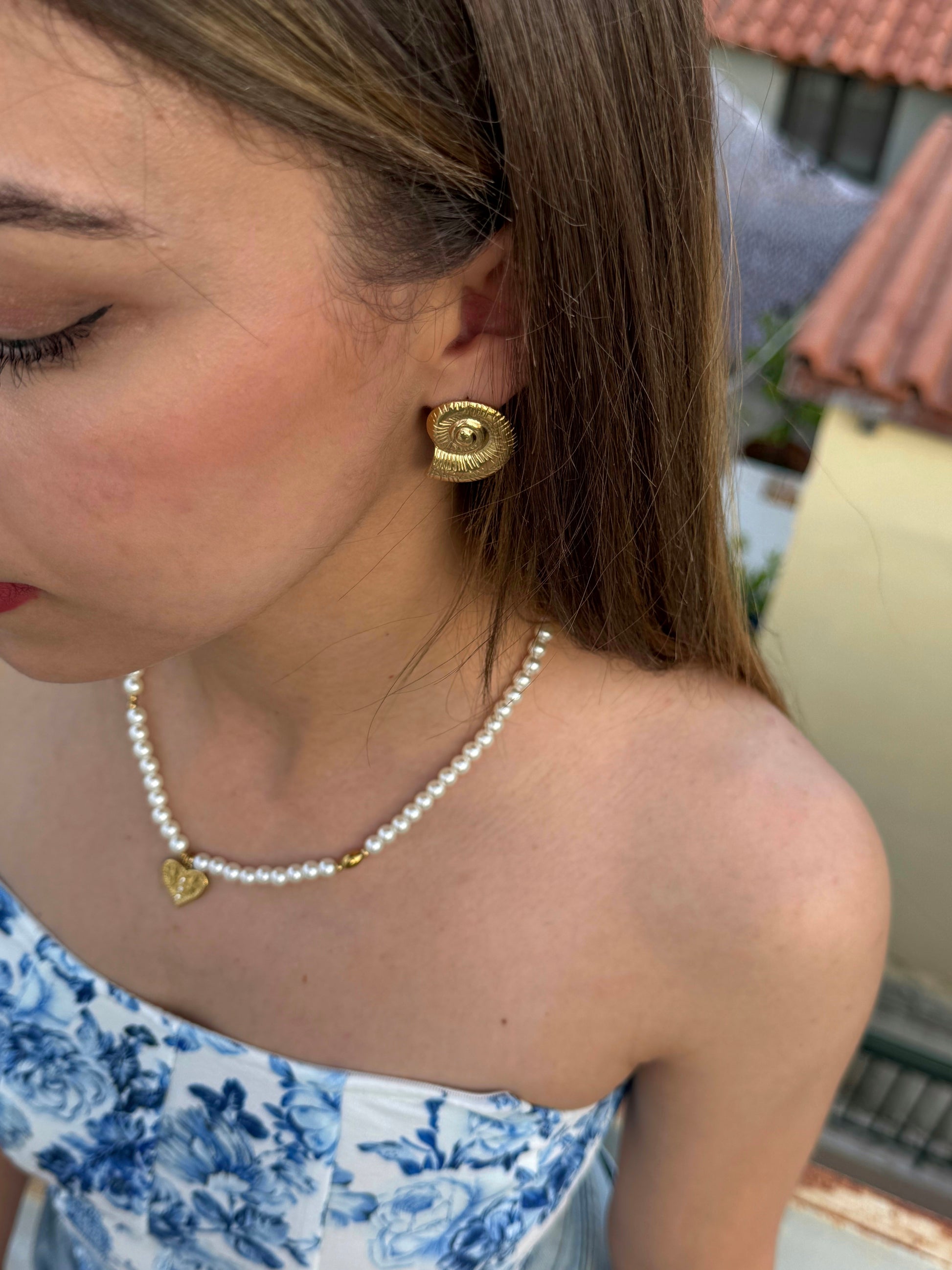 Σκουλαρίκια εμπνευσμένα από την αρμονία της φύσης και τη διαχρονική κομψότητα του βυθού. Το Cochlea Aurea, σμιλεμένο από ανοξείδωτο ατσάλι με επιχρυσωμένη λάμψη, αποτυπώνει το σπειροειδές αποτύπωμα του κοχυλιού σαν μικρό έργο τέχνης.
