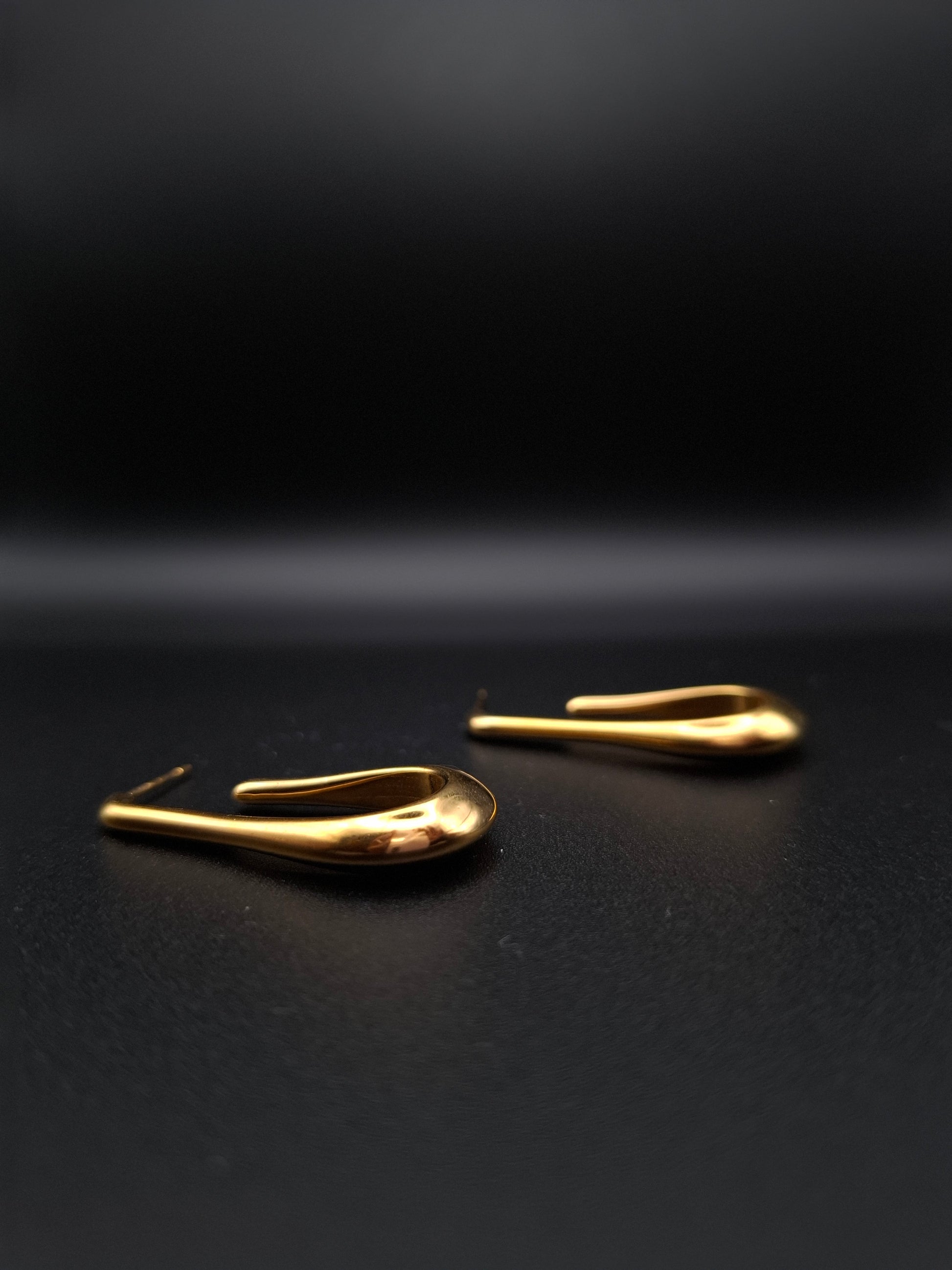 Σκουλαρίκια από ανοξείδωτο ατσάλι με χρυσή απόχρωση και minimal, organiс σχέδιο που θυμίζει ρευστό μέταλλο. Ένα statement αξεσουάρ που αποπνέει κομψότητα και μοντέρνα αισθητική. Ιδανικά για elegant και fashionable εμφανίσεις.
