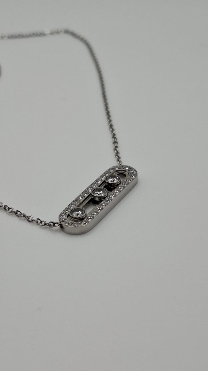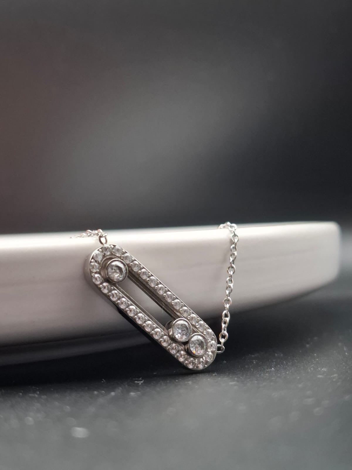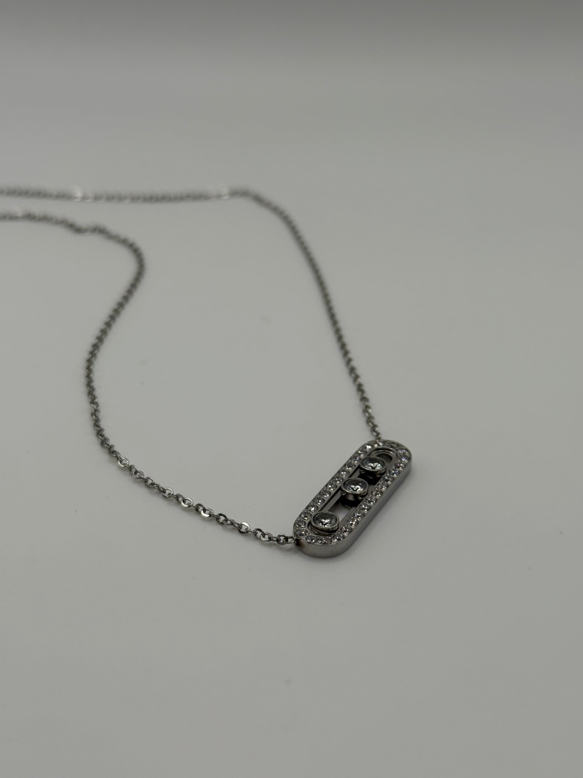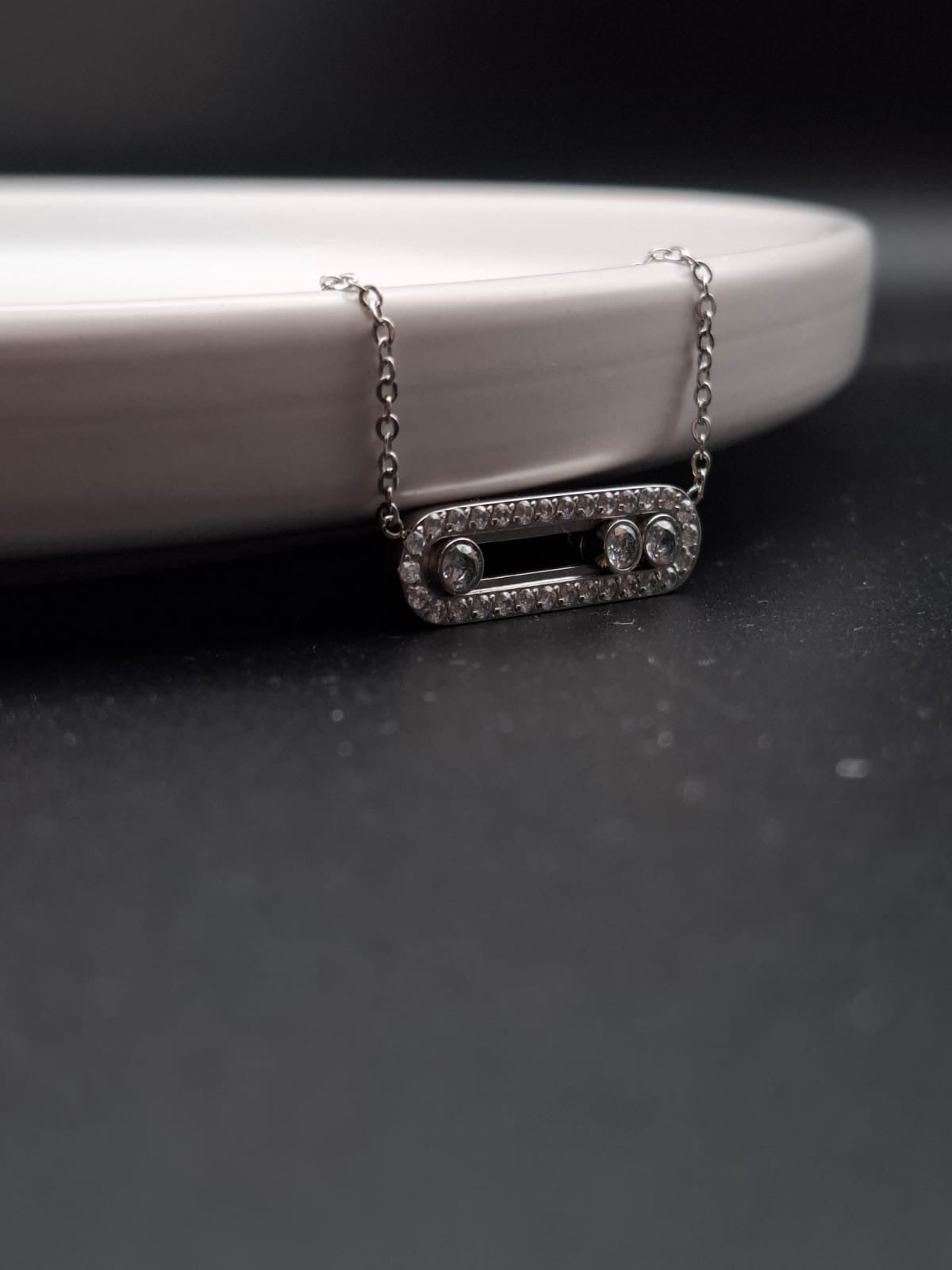 Κολιέ Luxus Trinitas με τρεις κεντρικές λαμπερές πέτρες και λεπτομέρειες ζιργκόν στο περίγραμμα. Κομψό και εκλεπτυσμένο, αποπνέει διαχρονική πολυτέλεια για κάθε περίσταση.