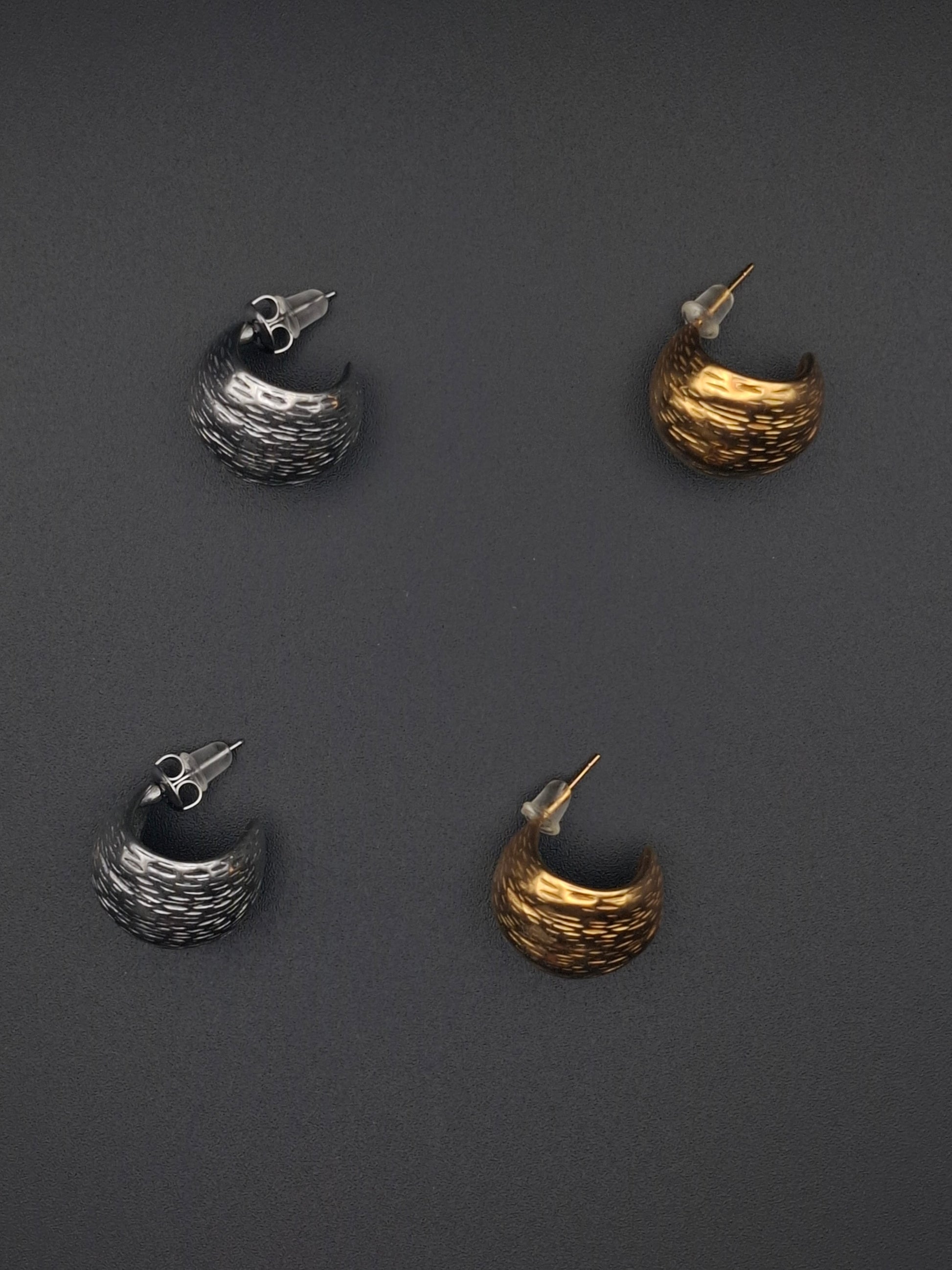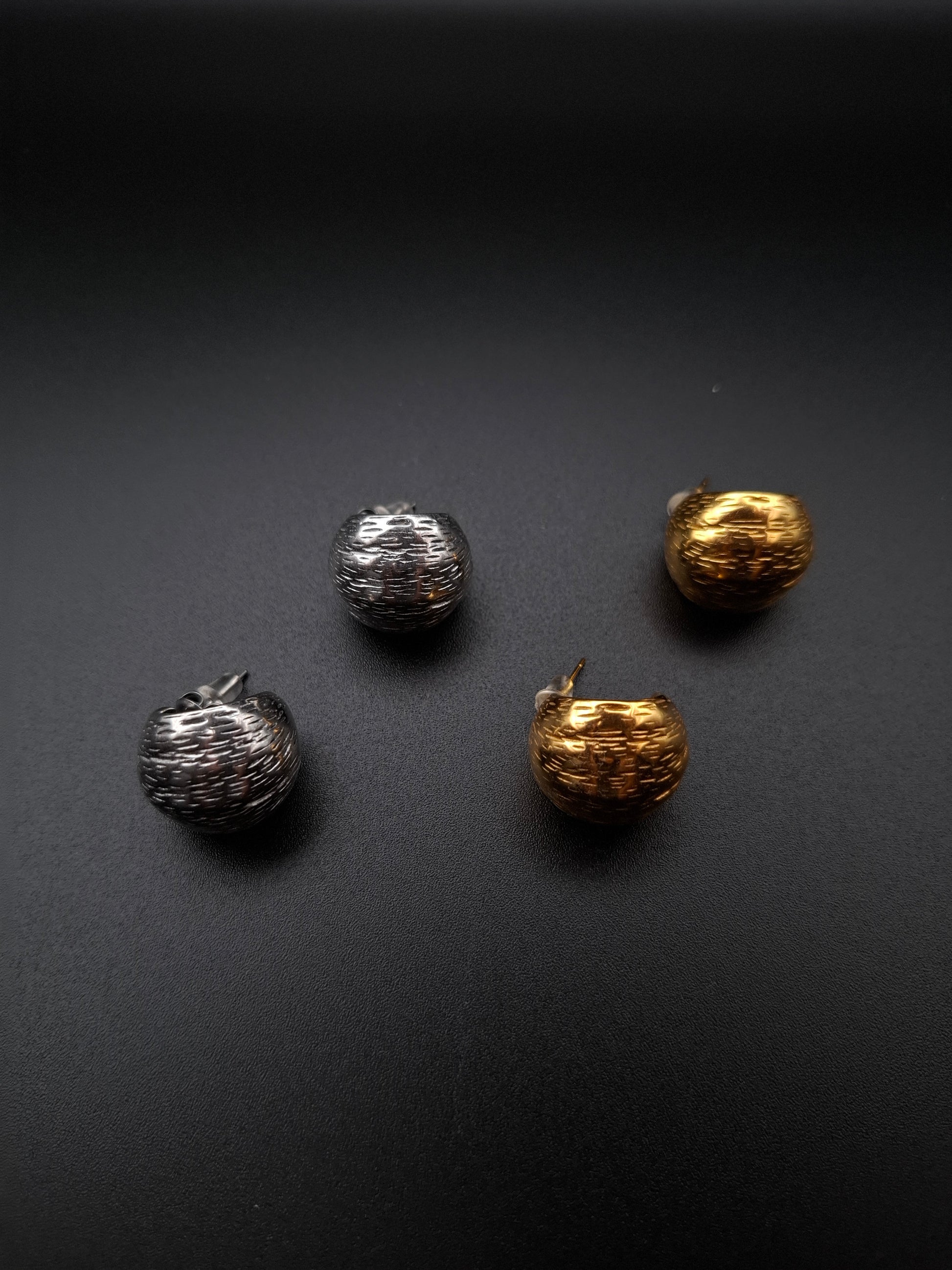 Κομψά σκουλαρίκια από ανοξείδωτο ατσάλι ξεχωρίζουν για την ανάγλυφη υφή και τη minimal αισθητική τους. Διαθέσιμα σε ασημί και χρυσό, προσθέτουν μια διακριτική αλλά πολυτελή πινελιά σε κάθε εμφάνιση. Ανθεκτικά και υποαλλεργικά, είναι η ιδανική επιλογή για στυλ που διαρκεί! ✨