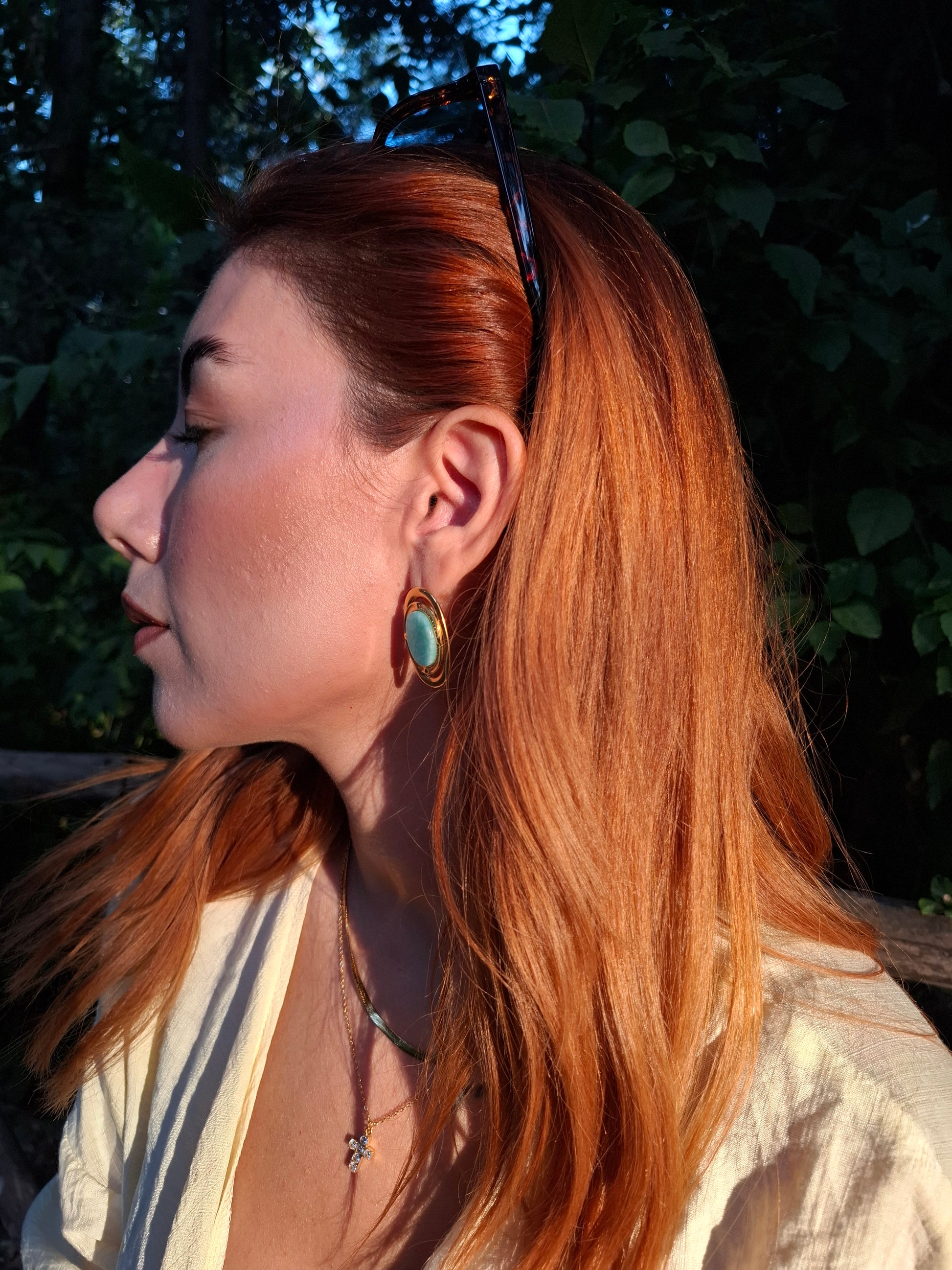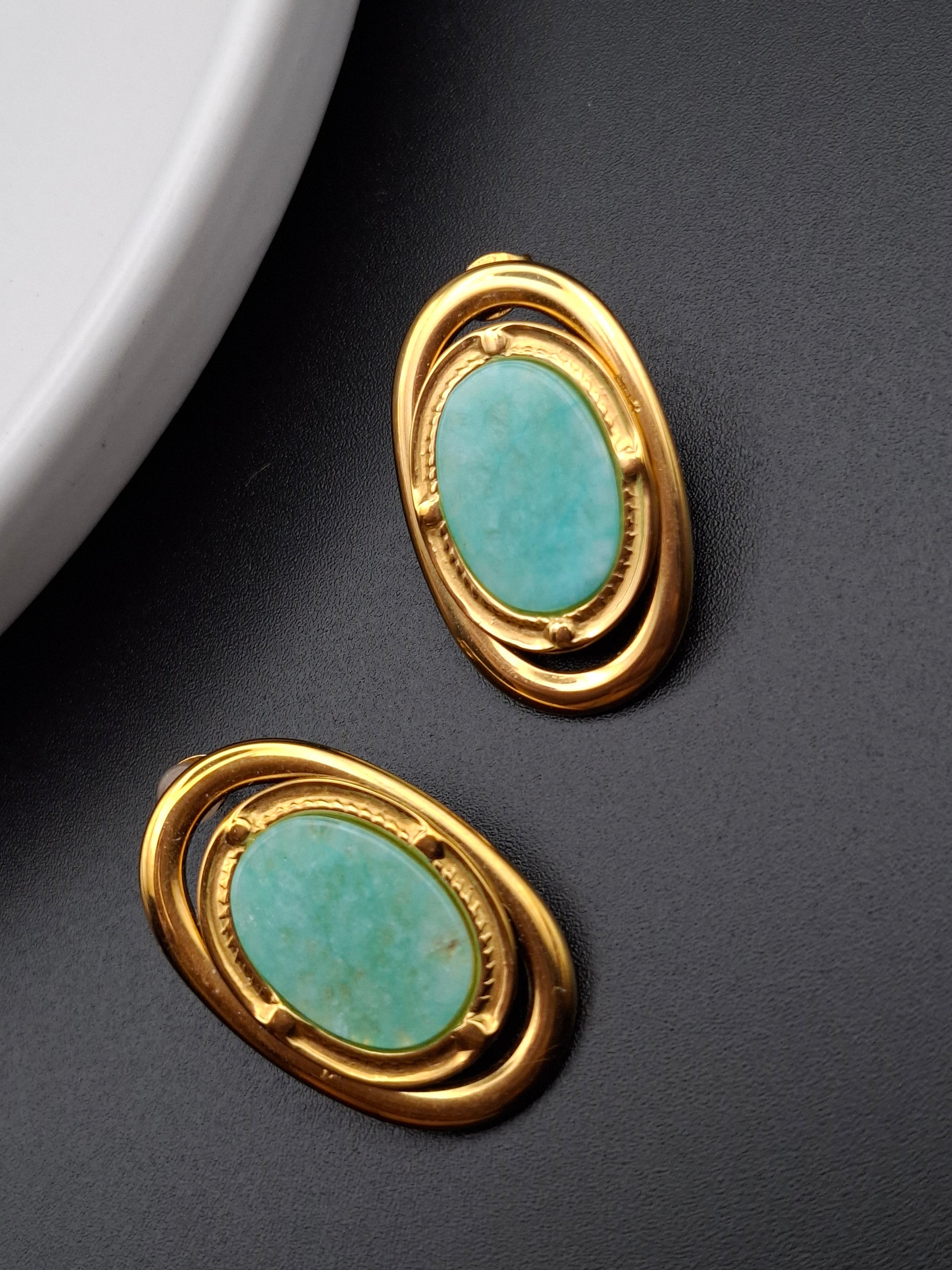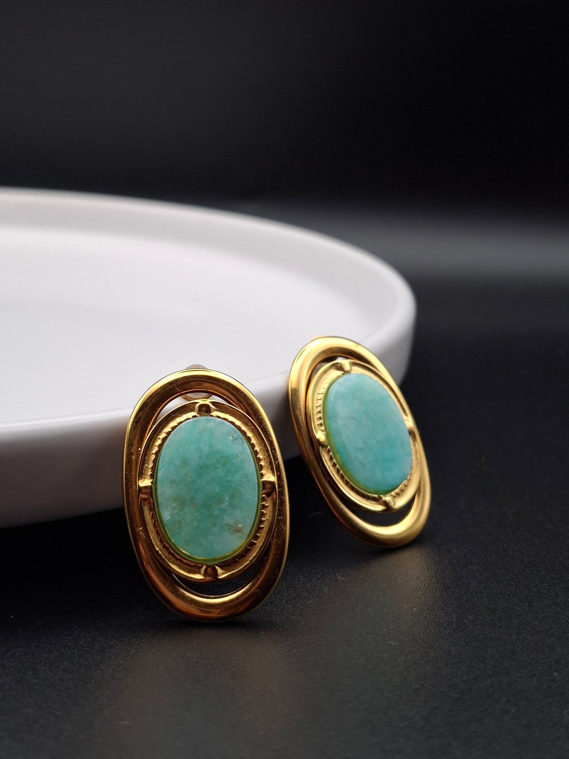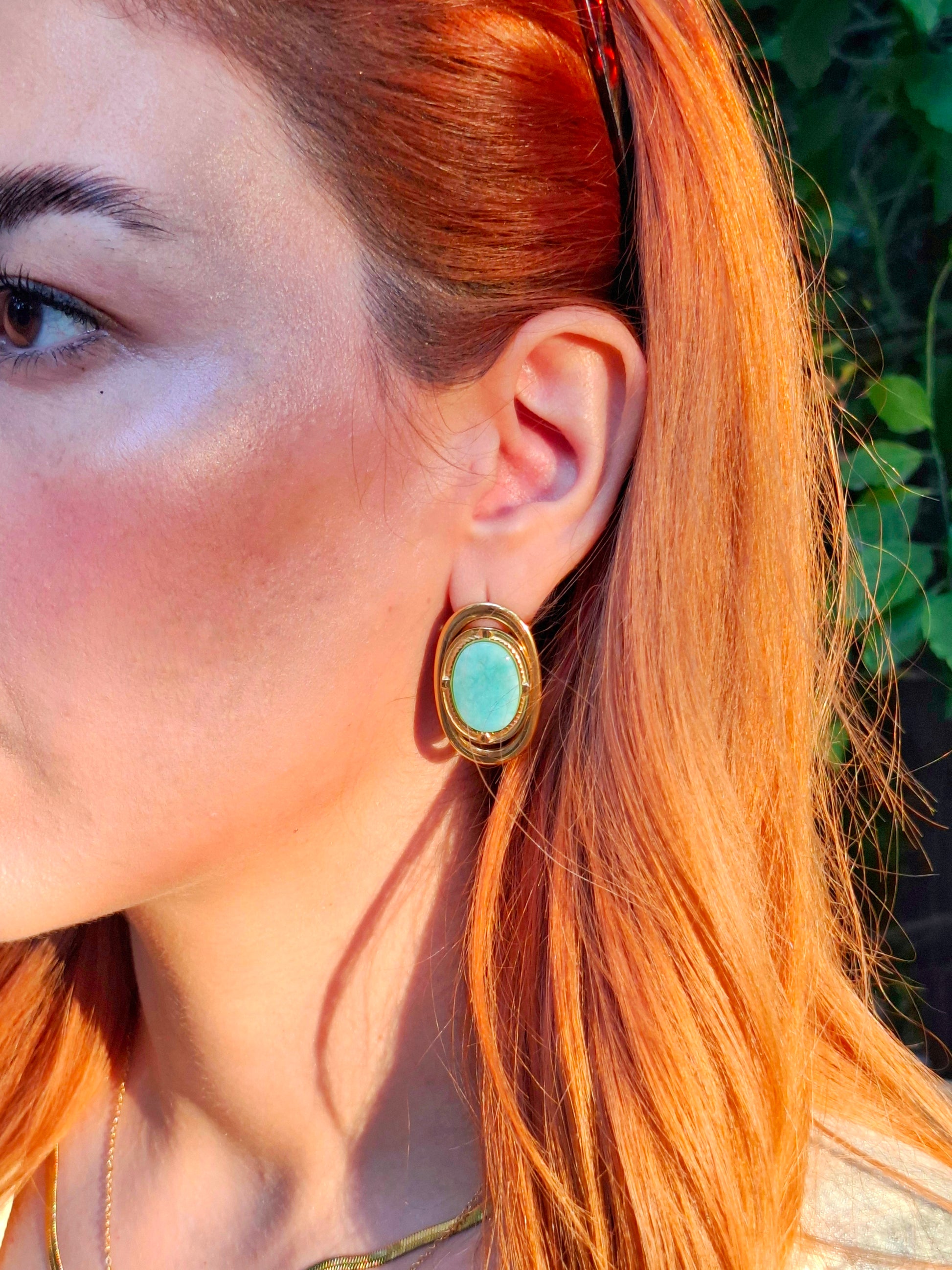 Το εντυπωσιακό τιρκουάζ κεντρικό στοιχείο, πλαισιωμένο από κομψό χρυσό τόνο, χαρίζει διαχρονική φινέτσα και λάμψη σε κάθε εμφάνιση.
