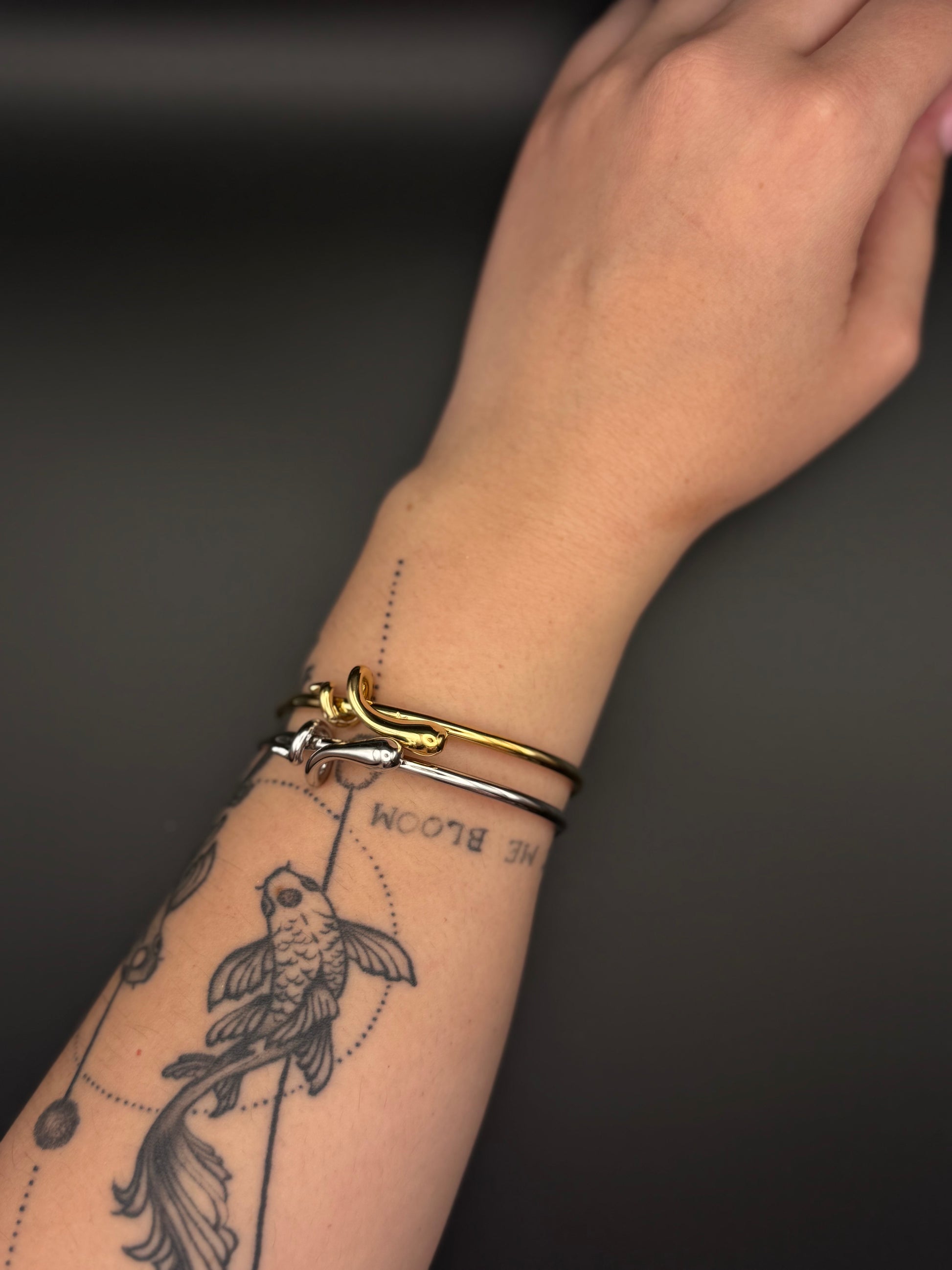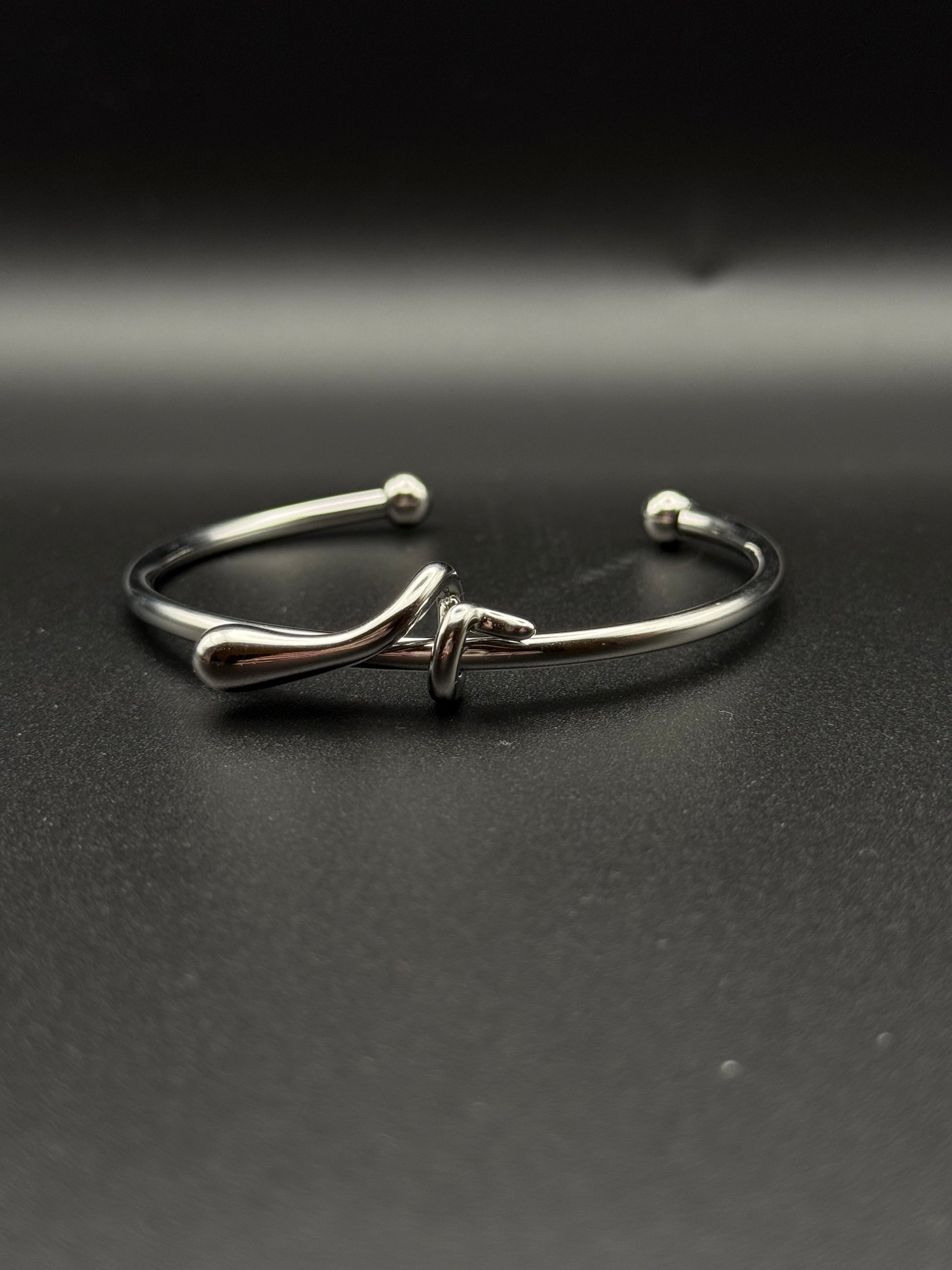 Απόλυτα μίνιμαλ με μια μικρή έκπληξη: η Nodi είναι μια ατσάλινη χειροπέδα με καθαρές γραμμές και ένα μοναδικό μπροστινό δέσιμο που θυμίζει δεσμό — σταθερό, κομψό, συμβολικό. Φοριέται μόνη της ή μαζί με άλλα βραχιόλια για πιο layered ύφος.