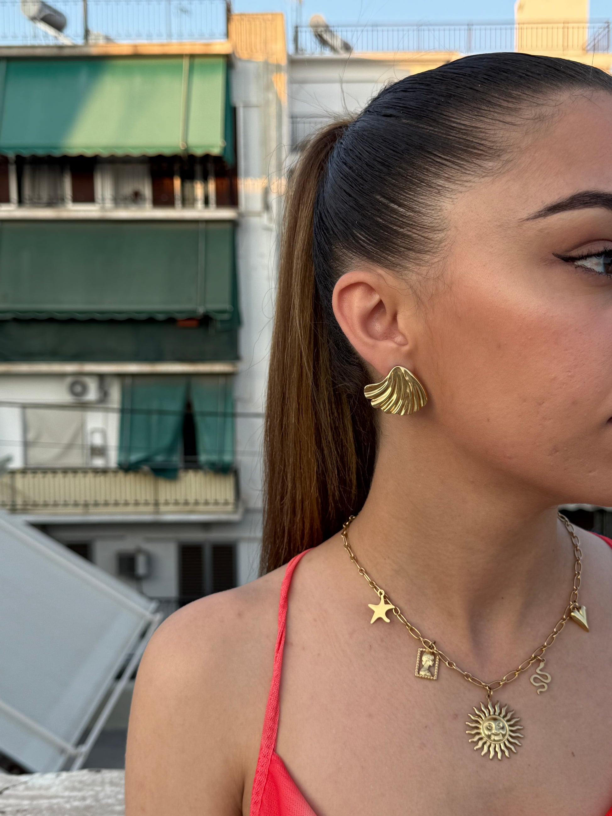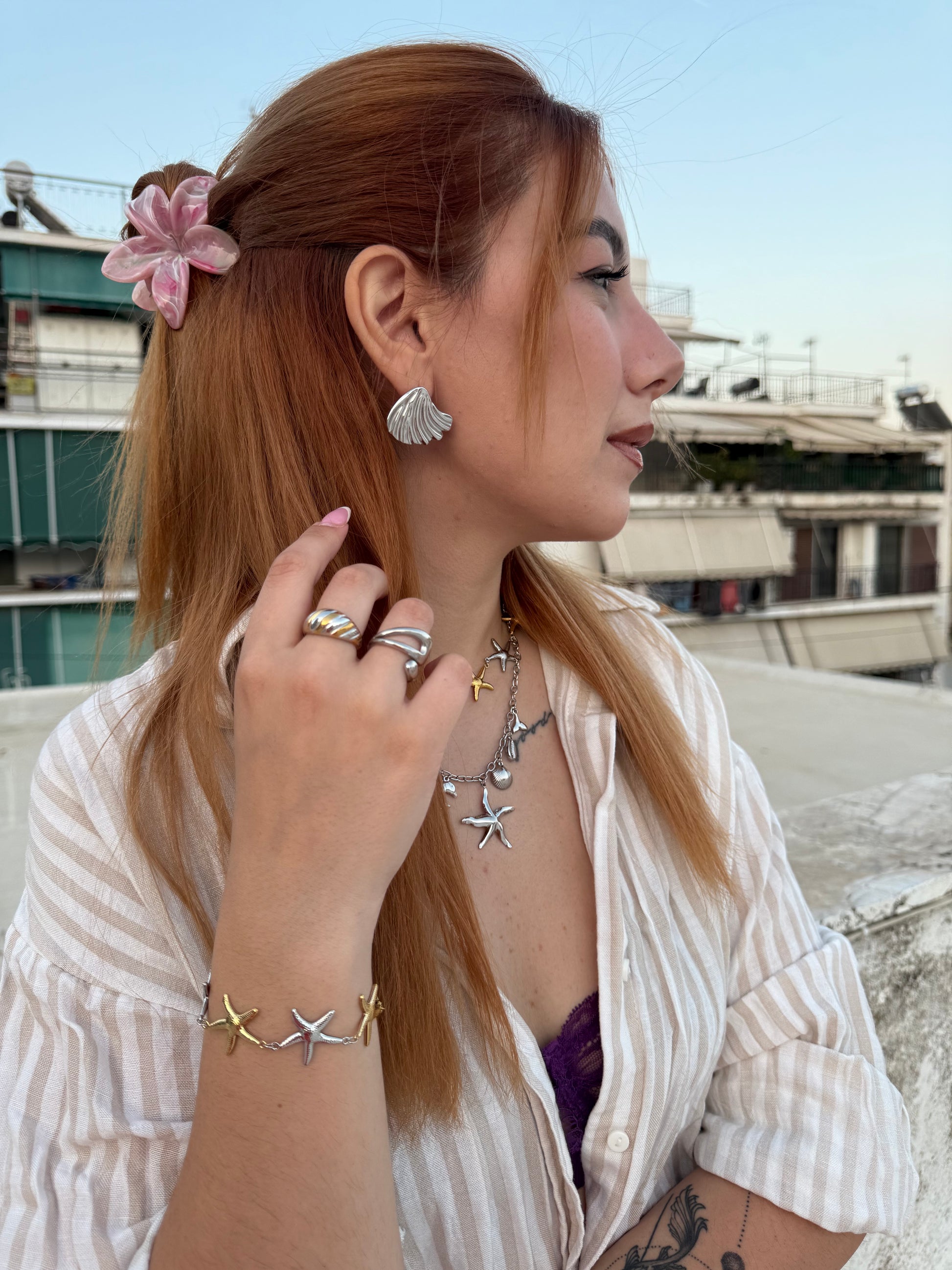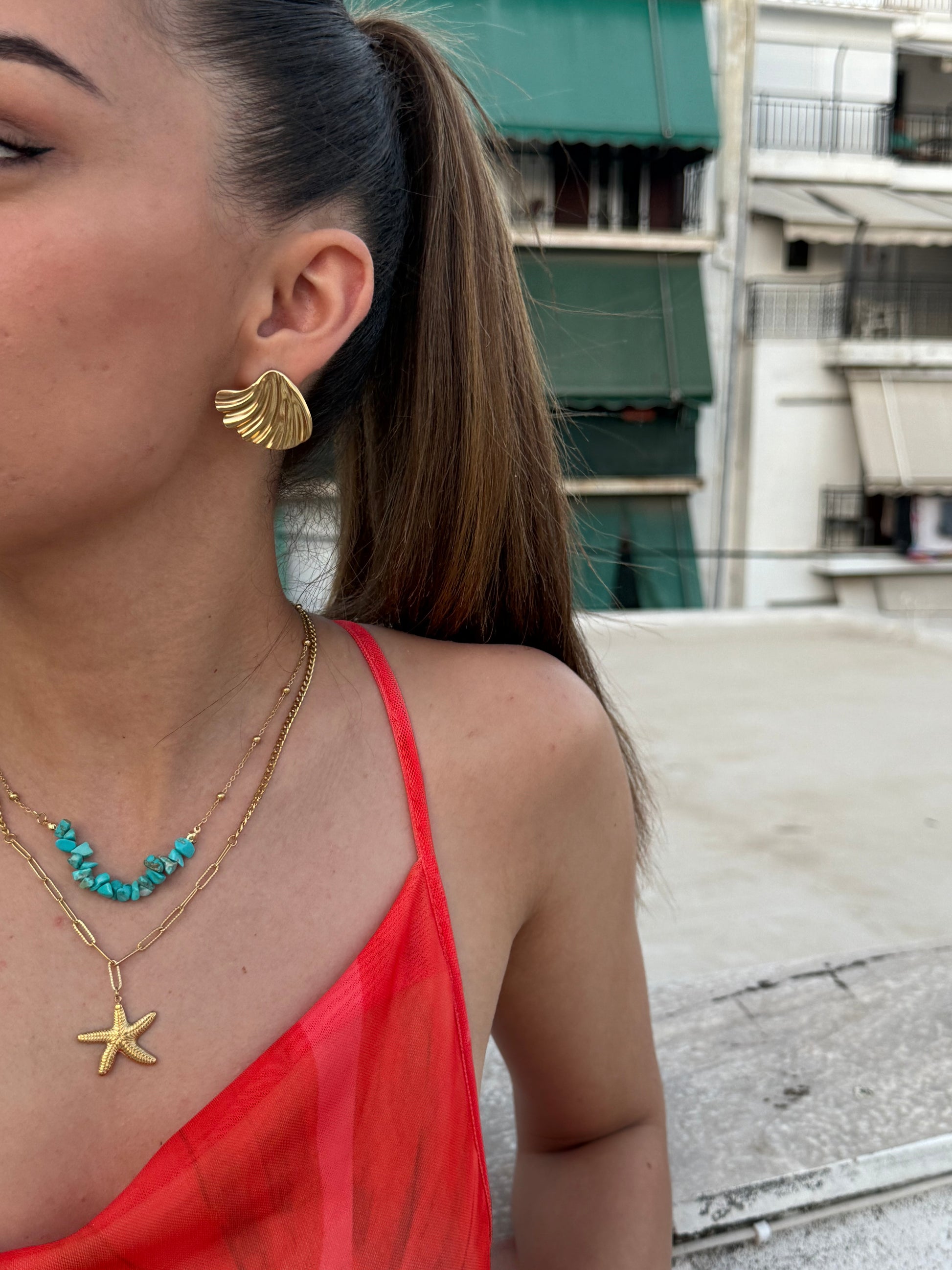 Αναδείξτε το στυλ σας με το εντυπωσιακό σετ σκουλαρικιών από ανοξείδωτο ατσάλι, εμπνευσμένο από τη μαγεία της θάλασσα. Το Siren έχει ένα μοναδικό σχέδιο που θυμίζει ουρά γοργόνας, αποπνέουν ρομαντισμό και φαντασία, ενώ προσθέτουν μια διακριτική λάμψη σε κάθε σας εμφάνιση.
