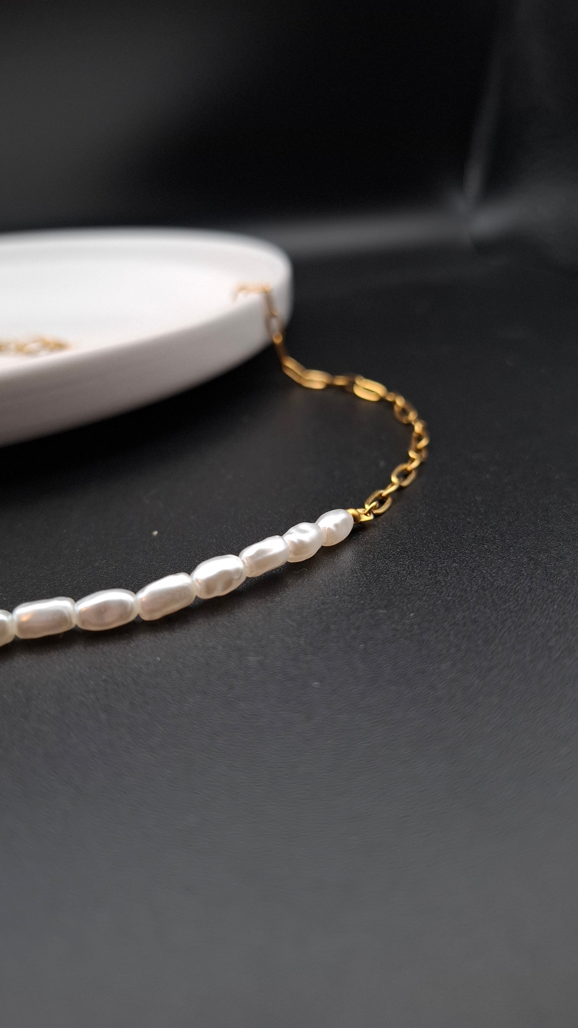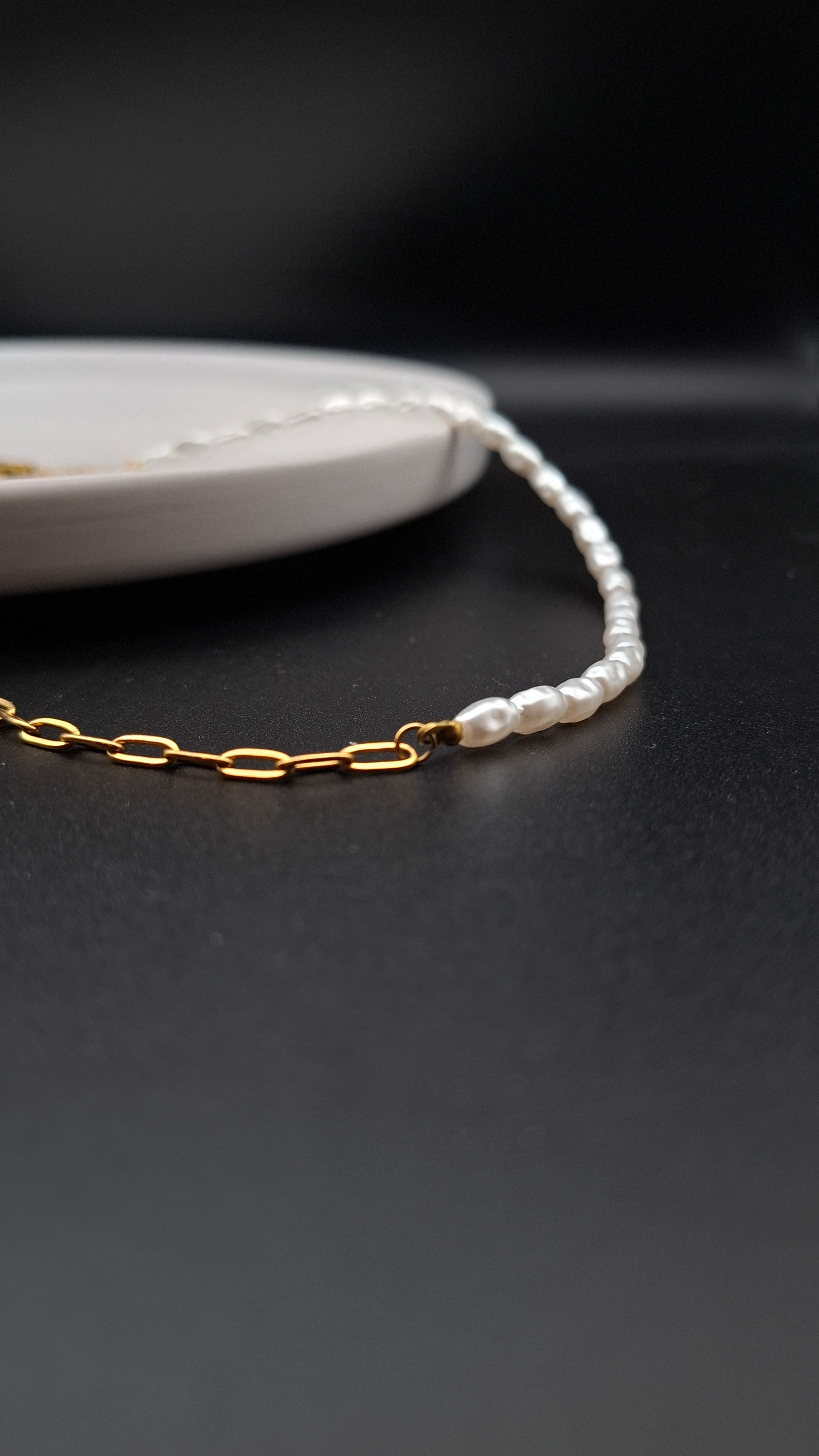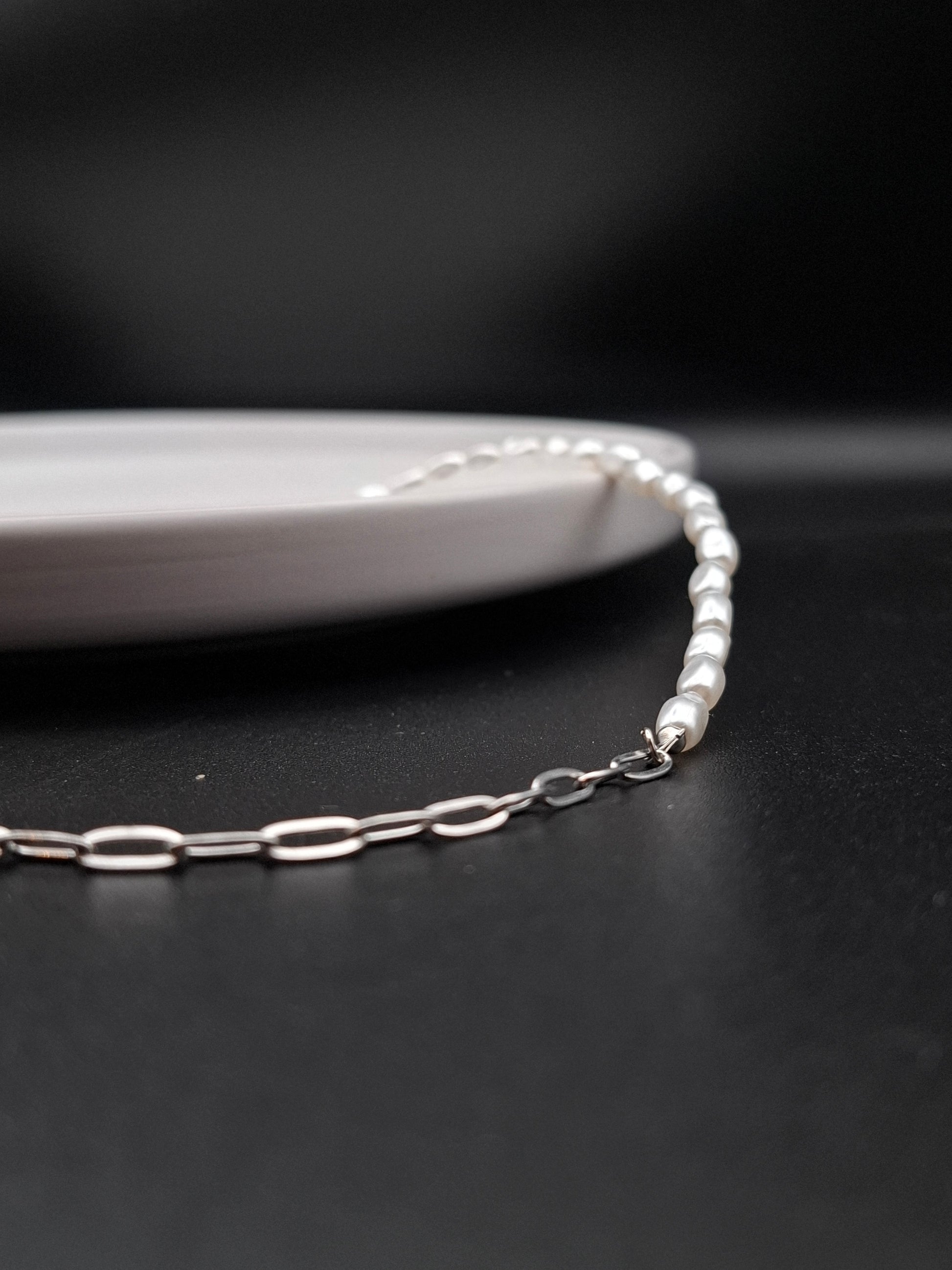 Minimal και κομψό, το White Code συνδυάζει φυσικές πέρλες με μοντέρνα αλυσίδα από ανοξείδωτο ατσάλι. Διαθέσιμο σε χρυσό και ασημί, δεν μαυρίζει και φοριέται από το πρωί ως το βράδυ.